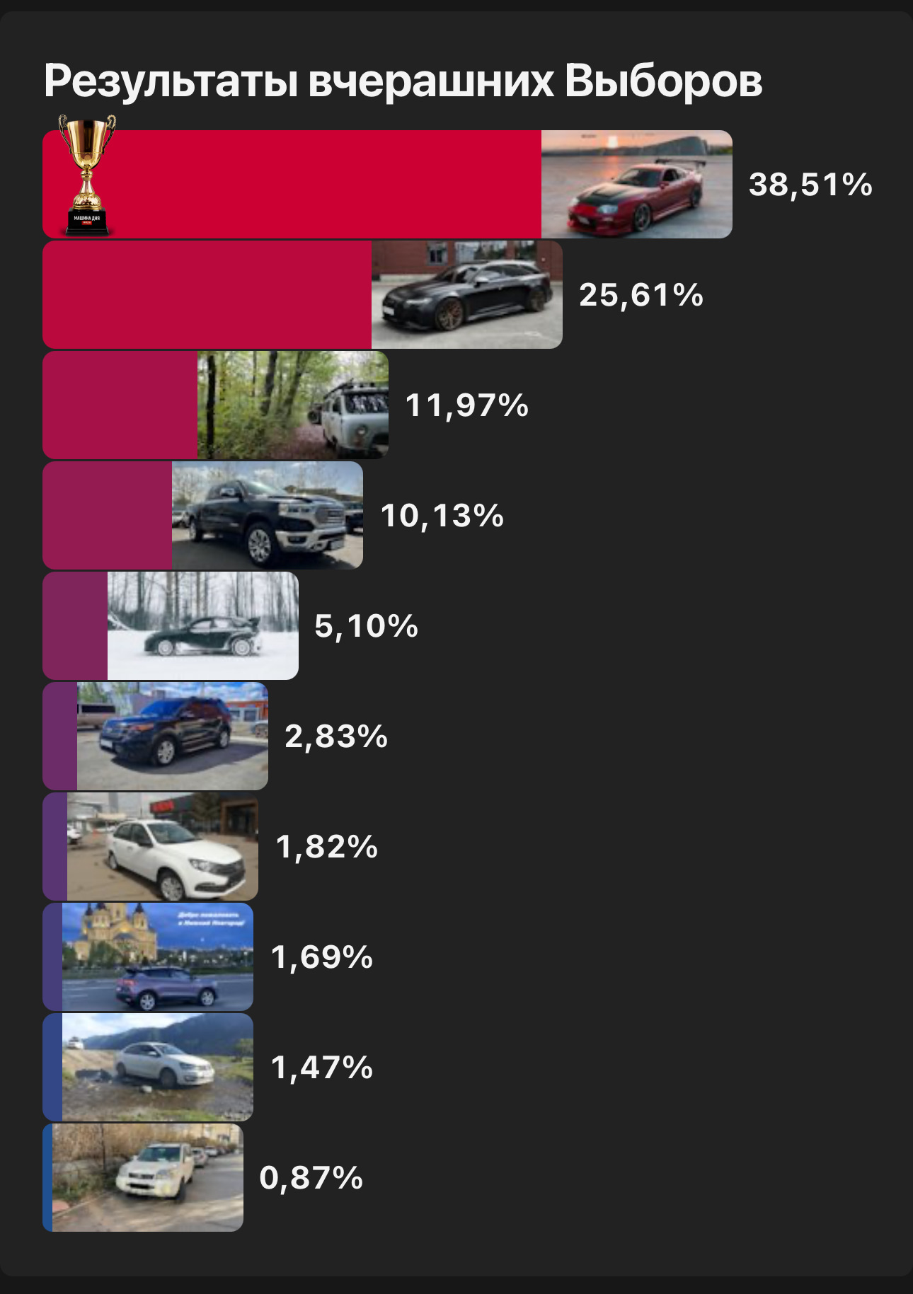 Вот такие выборы здоровые и классные. Достойная победа. Данная Супра самый офигенный инженерный экземпляр.