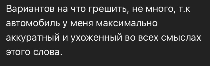 Вариантов на что грешить, не много, т.к автомобиль у меня максимально аккуратный и ухоженный во всех смыслах этого слова.