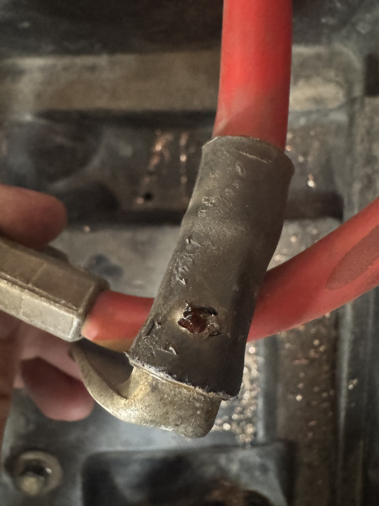 Не до конца обжатая клема в гильзе, кто-то просто работу до конца не сделал свою . Такой же эффект будет когда провода не правильного сечения подобраны и плохо прикручены . На самом деле не так часто встречается, но так и до пожара не далеко т.к высокие токи и нагрев прямая к примому огню .