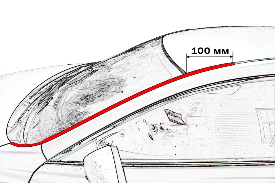 На фото отметил красной полосой, ту часть стекла которая пачкается от капель с зеркал заднего вида.