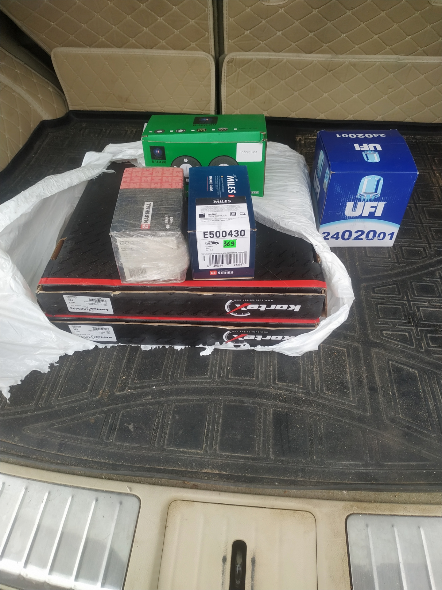 Колодки на зад пошли от Маршал, на перед керамикаот Miles, а диски передние решил взять на озоне из "доставка сегодня" за 3500😂 и противотуманки 2500.