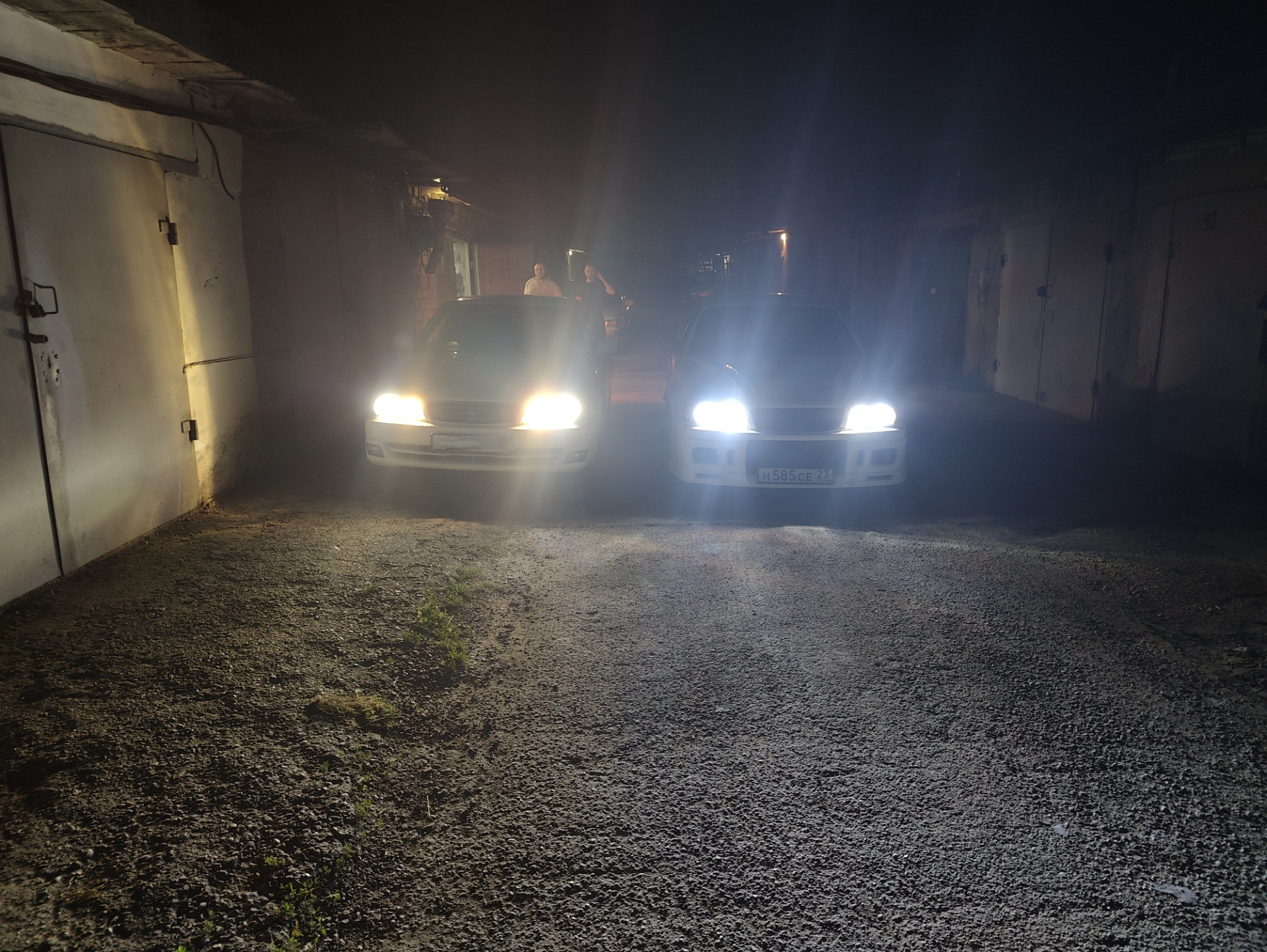 Дальний уже сильно различается, сток vs philips Led 35w, габариты сток vs OSRAM Led, ну и туманки luxsar против стоковых фар бокового света на желтхах и хороших лампах ( не суть, забыл что стоит, но +/- как у всех по заводу).