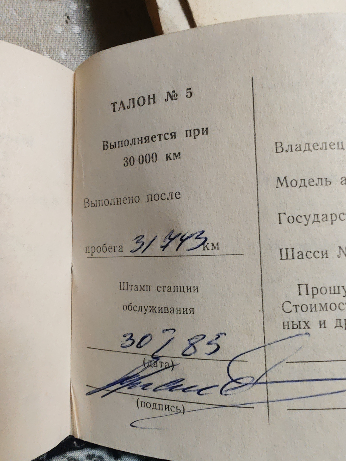 Прошлый хозяин отдал все бумаги которые сохранились с автомобилем. Среди них и сервисная книжка.