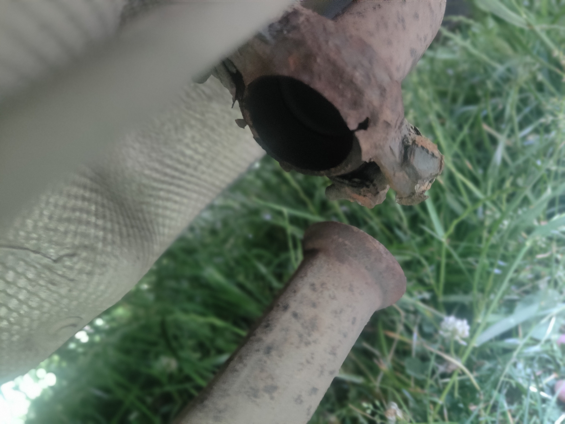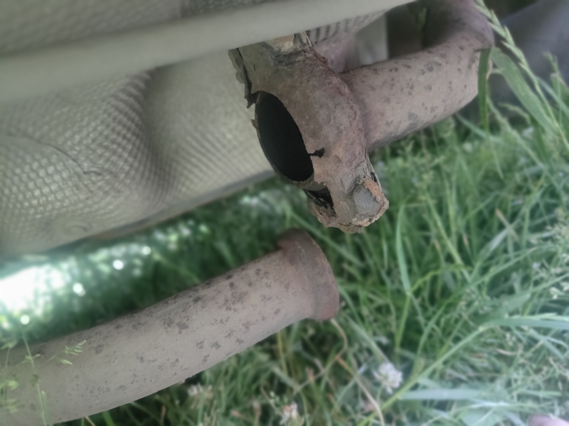 2. Отвалилось одно ухо на креплении гофры. Племянник в гараже заварил.