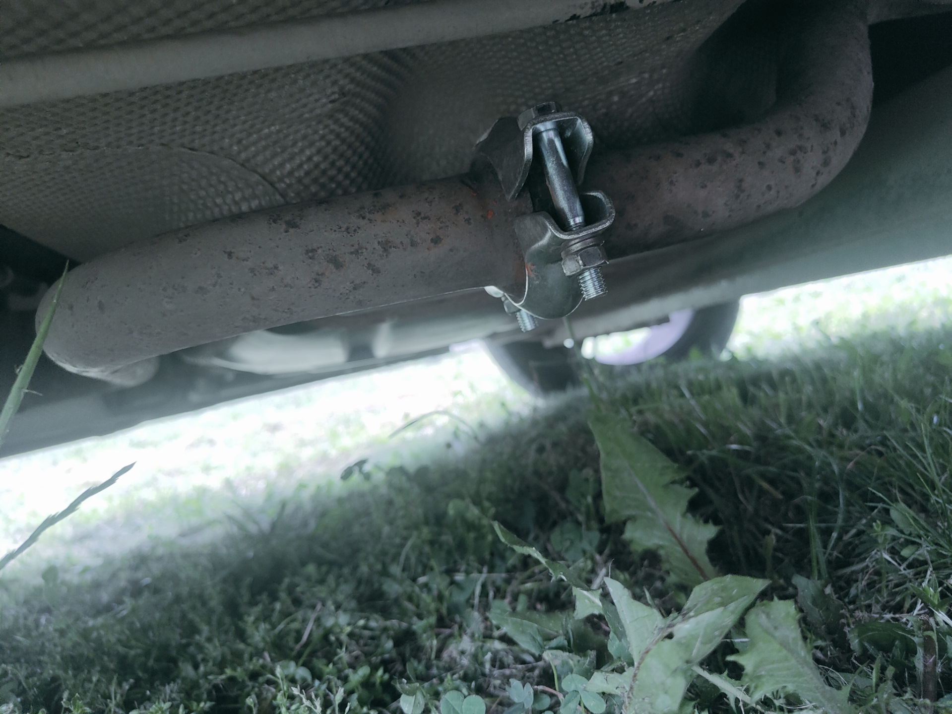 Всем привет! Где-то месяц назад стал замечать повышенный шум от выхлопа, первая мысль — гофра, но тут же поймал себя за руку и подумал, что в ближайший отпуск куплю эту гофру и переварю. Но тут приехал в субботу с дачи и заметил заметно усилившийся звук отдающий в металл, подумал, что нужно срочно принимать меры и обнаружил, что прогорел хомут.