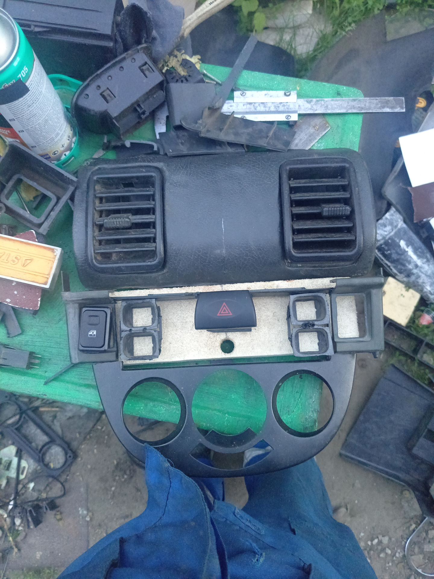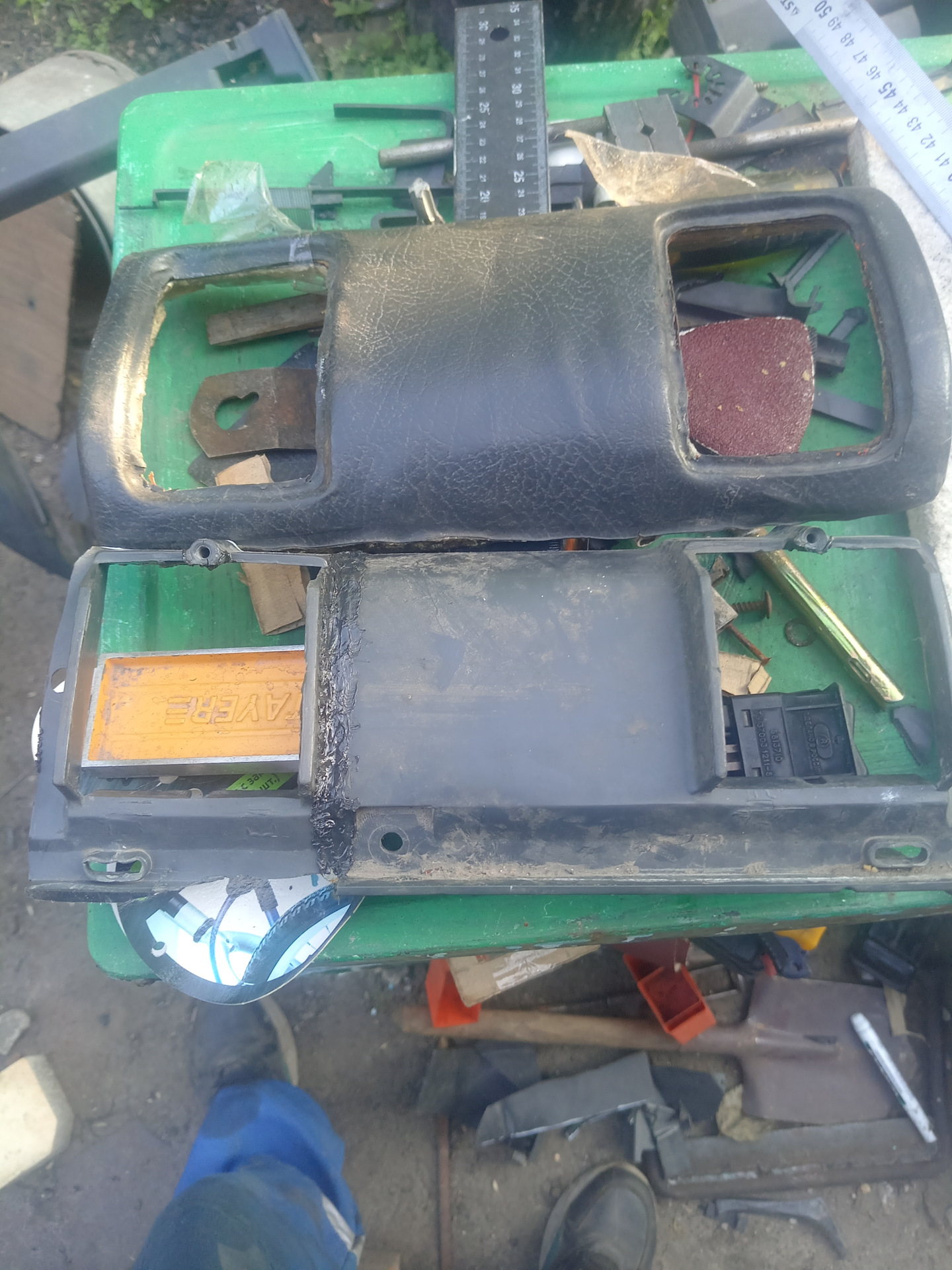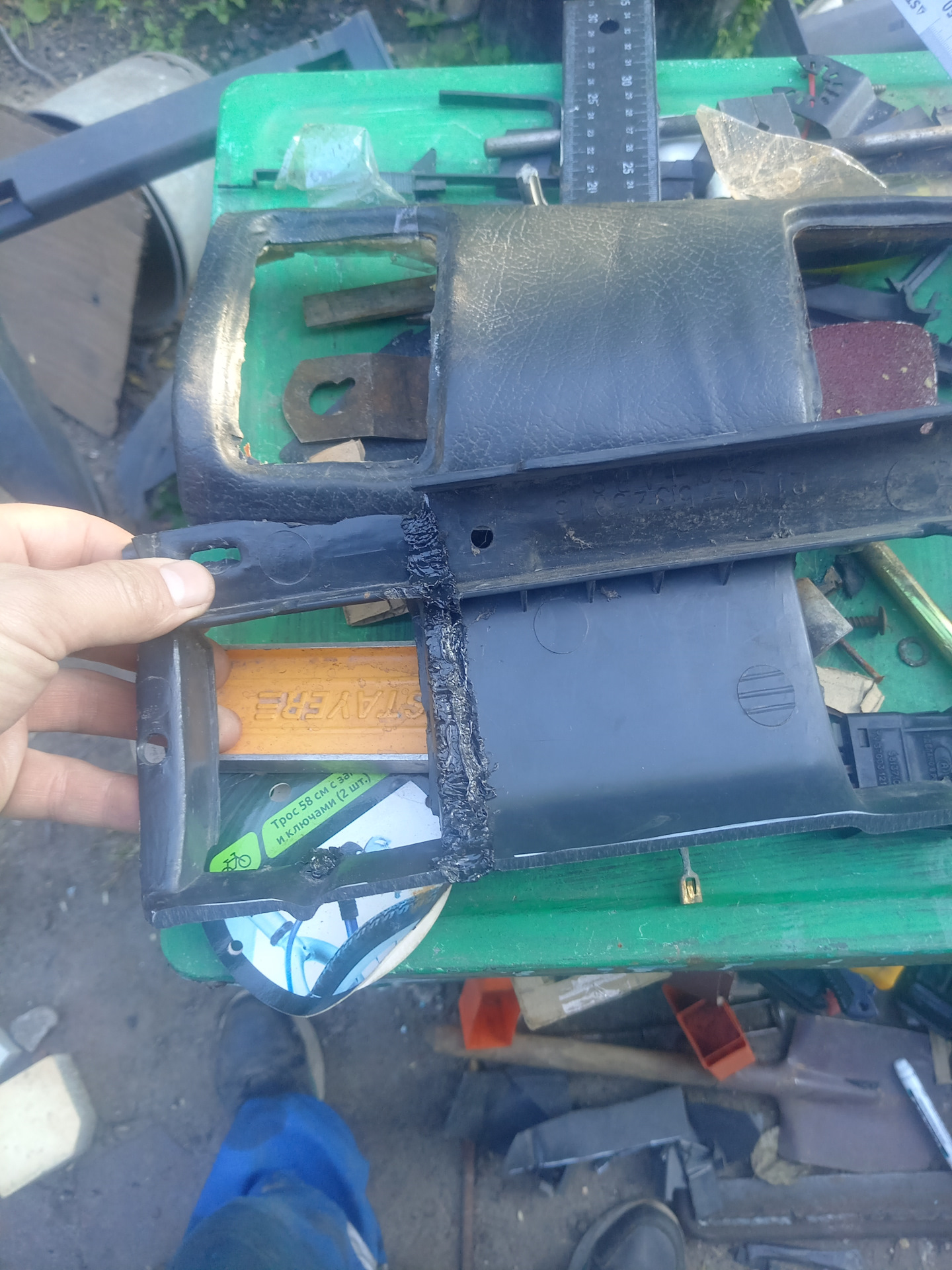 Теперь перейдем к изготовлению нового воздуховода. Мне всегда нравилось сопла воздуховода от десятки. Панели от десятки набрал ещё когда ездил на семёрке, по этому материала для экспериментов придостаточно. Отрезал правое сопло на десятой накладке до рамки щитка приборов, затем правое сопло до центрального воздуховода, затем обрезал все лишнее