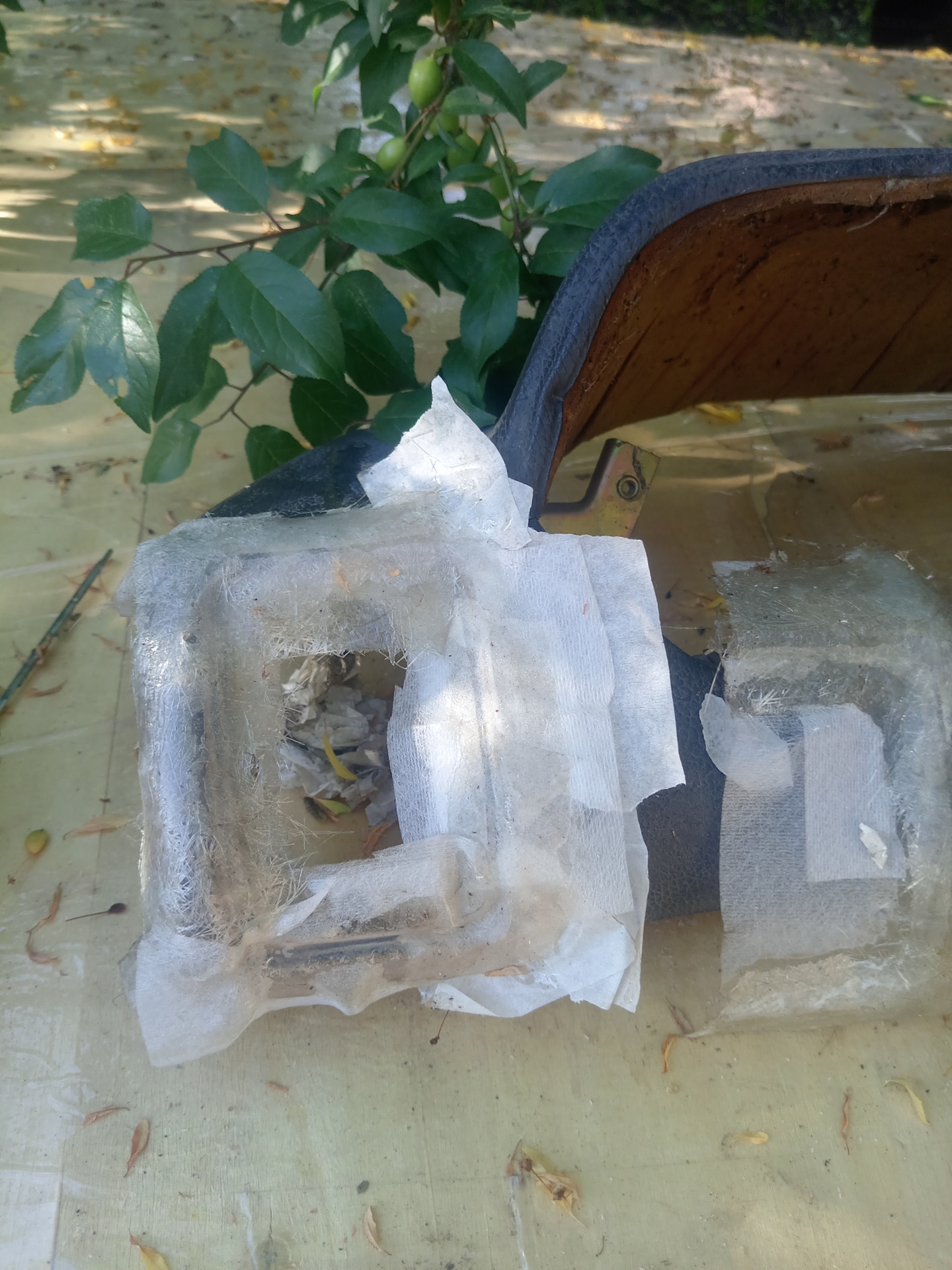 С помощью фена ошкурил, соединил две части с помощью подвеса для ГКЛ, заполнил пространство пеной