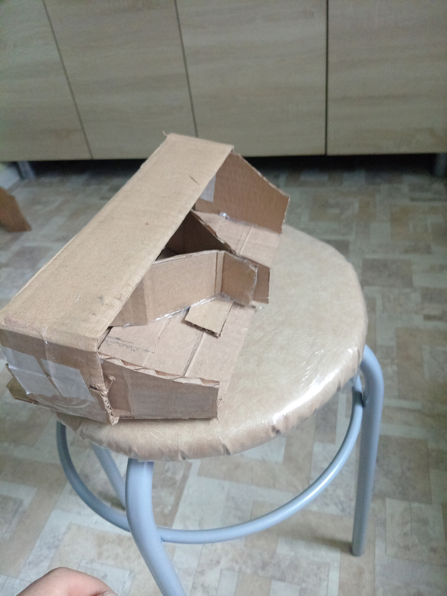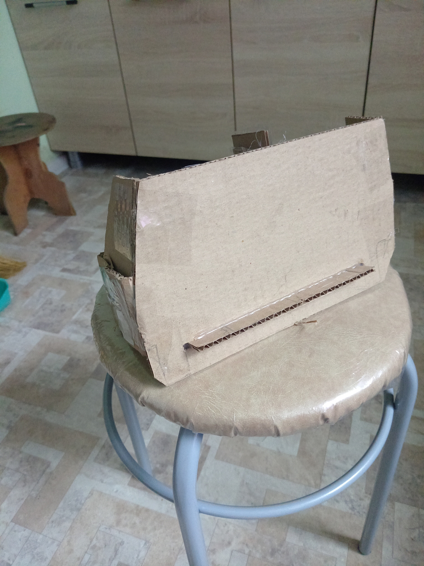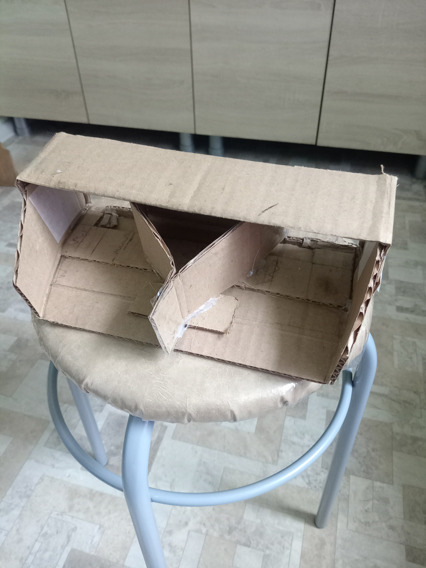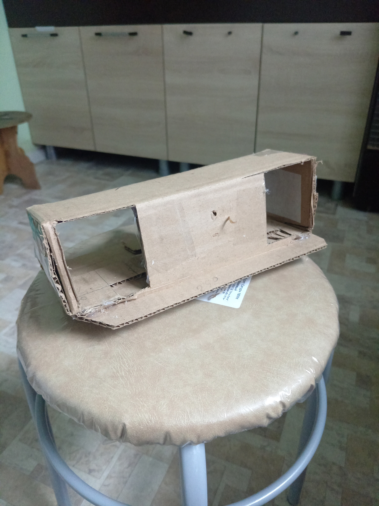По этому решил делать всё из пластика, благо есть из чего. Сделал макет воздуховода из картона, прикинул, понравилось.