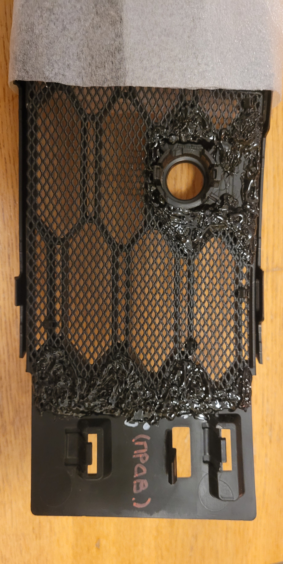 Работы могут быть как со снятием облицовки переднего бампера, так и без снятия. Я совмещаю доработку с установкой «радара-дистроника» и снятием облицовки, на этом этапе будет удобно помыть керхером радиатор. А также установить кронштейны VAG 60U807055A и VAG 60U807056A (аналоги: Jorden JH20RAP20021CL + JH20RAP20021CR) из пластика PP-TD20 с дополнительной площадкой закрепления противотуманных фонарей, если отсутствуют, как в моем случае. Они частично крепятся на расплавленный пластик в облицовке максимального бампера VAG 60U807217Q, которая изначально ставилась концерном на комплектации а/м с ПТФ. Ввиду того, что облицовка бампера изготовлена из модифицированного полипропилена PP+E/P-TD10, для лучшего крепления деталей необходима пайка термовоздушной паяльной станцией или двухкомпонентный клей для полипропилена.
