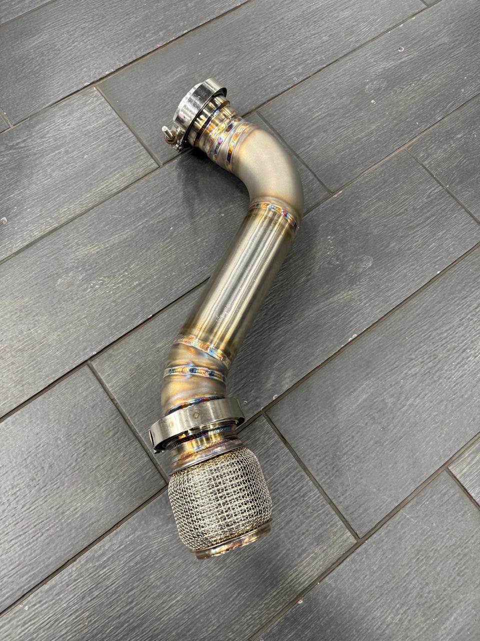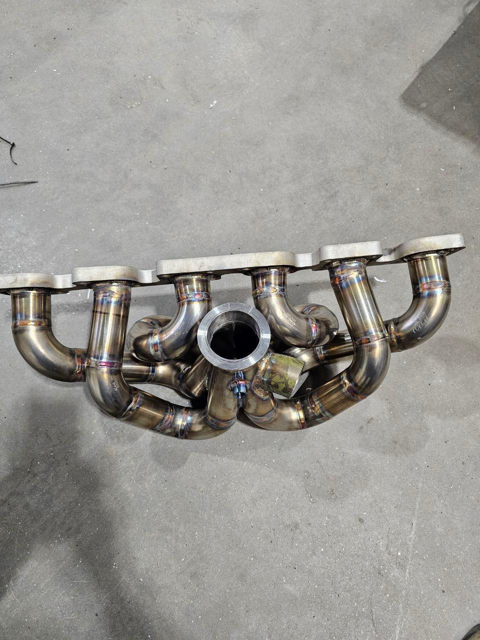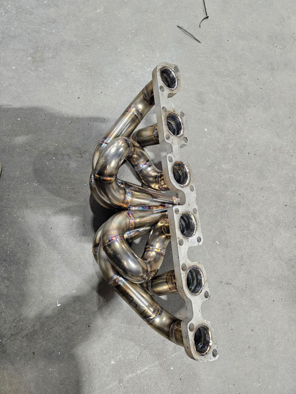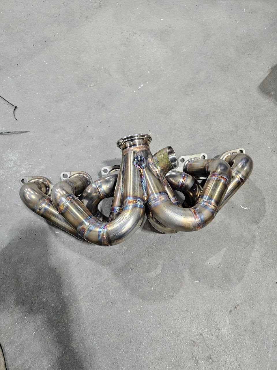 2. Сварен кастом коллектор и даунпайп 76мм под V-Band, в последующем закатанный в хитшилд. Фланец брал в LuckyStation. Так же сняли плоскость с фланца, который прилегает к гбц. Установлено все на новую прокладку Siruda. Приобрел новый ориг гейт Tial MV-S 38мм и решил попробовать покататься на титановом скример пайпе, что оказалось слишком громким решением)