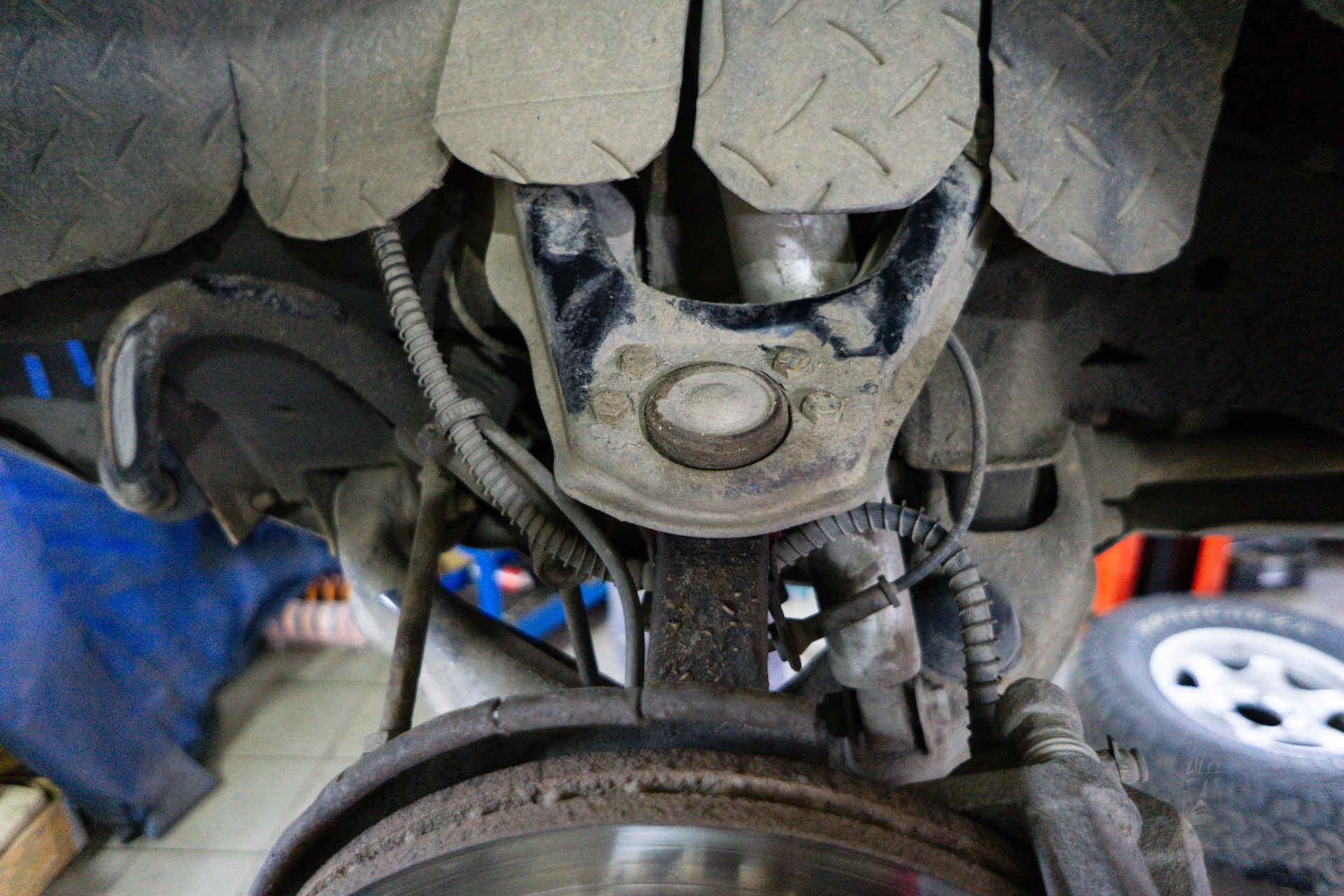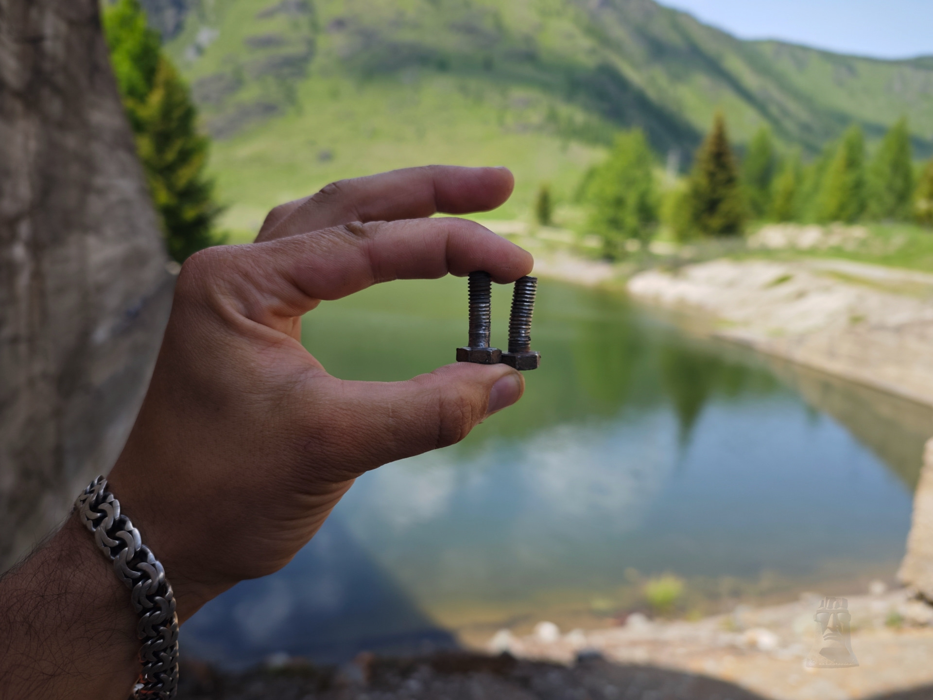 Из неприятного: в дороге открутилась левая верхняя шаровая — осталась на двух болтах. Услышал щелчки, полез разбираться. На заброшенной ГЭС пришлось снимать колесо и менять все болты. Заодно выяснилось, что уже полгода езжу с одной шаровой над рычагом, а другой под рычагом. 🤦♂️