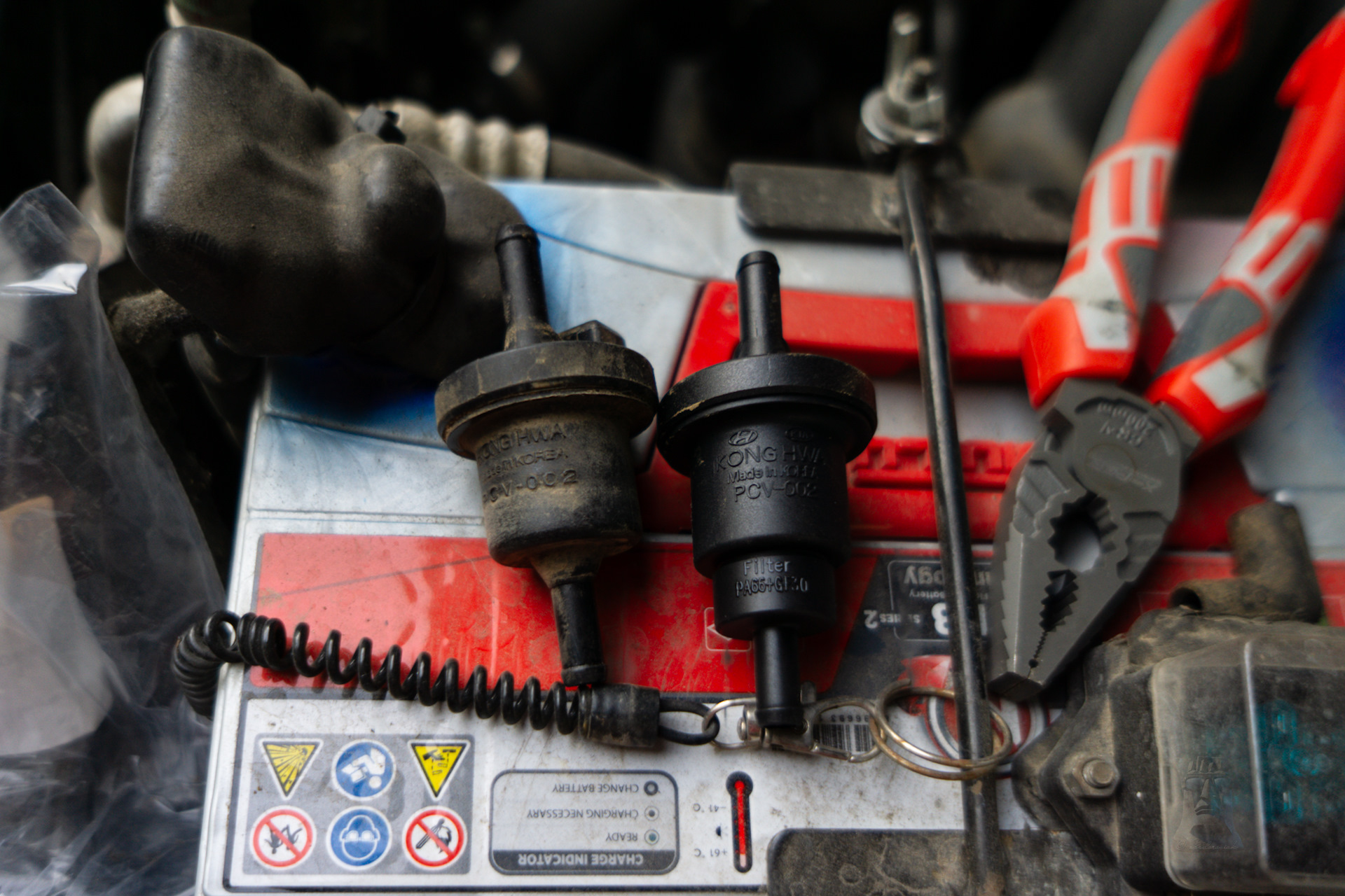 Бонусом: когда залил полный бак и поднимался на Ретранслятор в Акташе, из адсорбера потёк бензин через сливной штуцер. При открытии бака было дикое шипение — бензин аж выплёскивался. Сразу заказал клапан адсорбера. Уже после визита в сервис (стоя во дворе) проверил старый — он работает. Видимо, работает через раз — теперь стоит новый, чтобы не гадать.