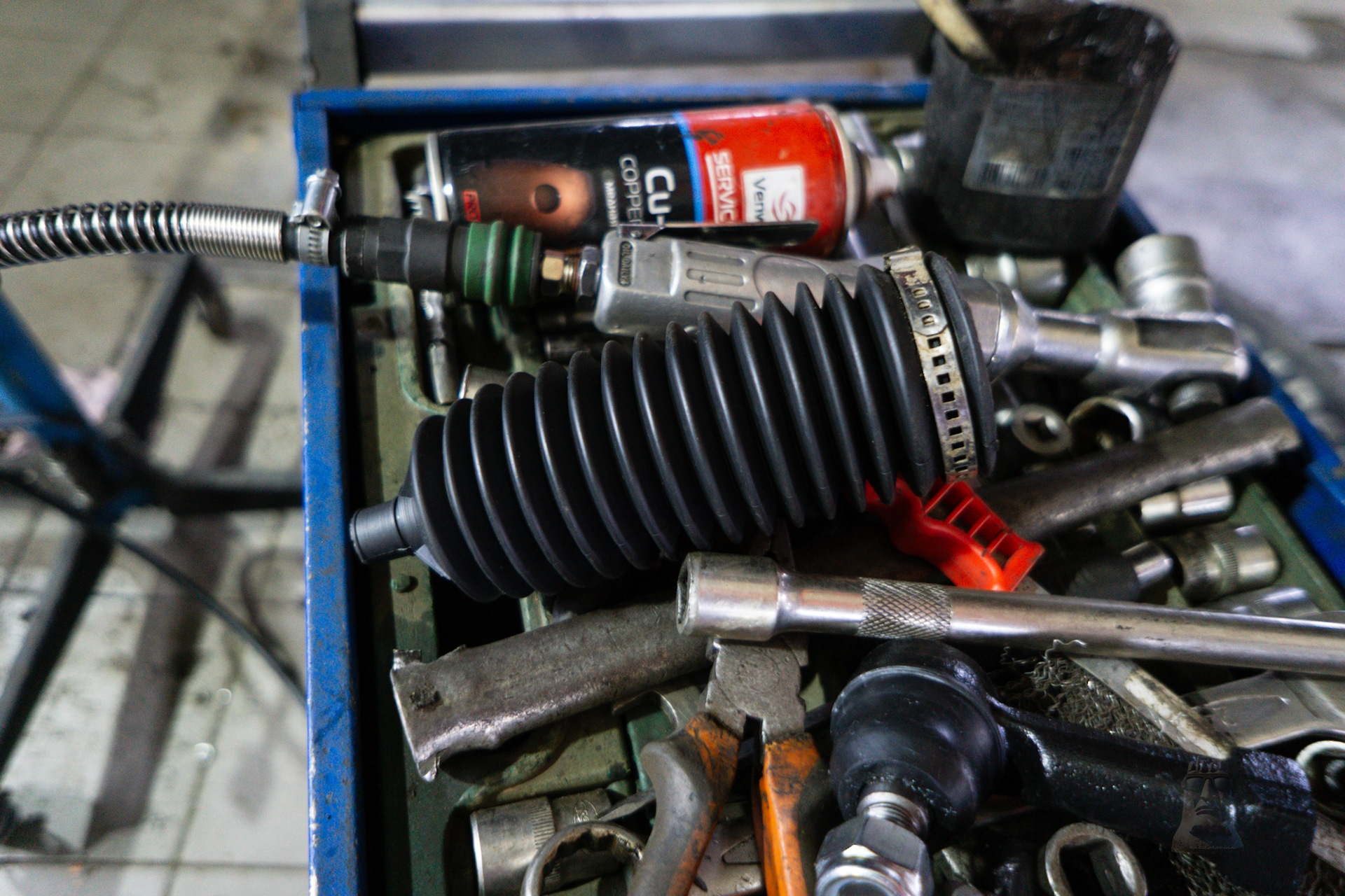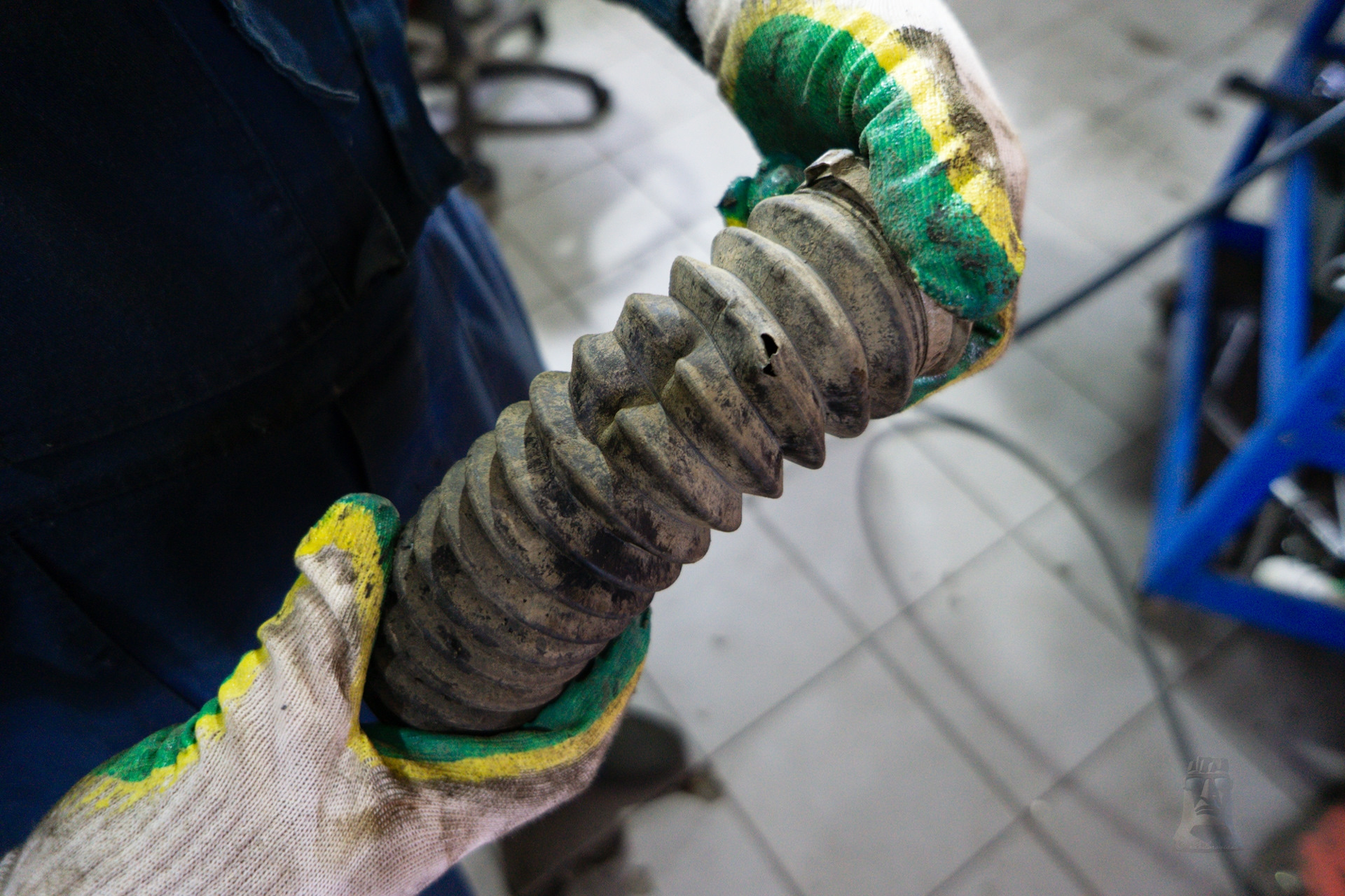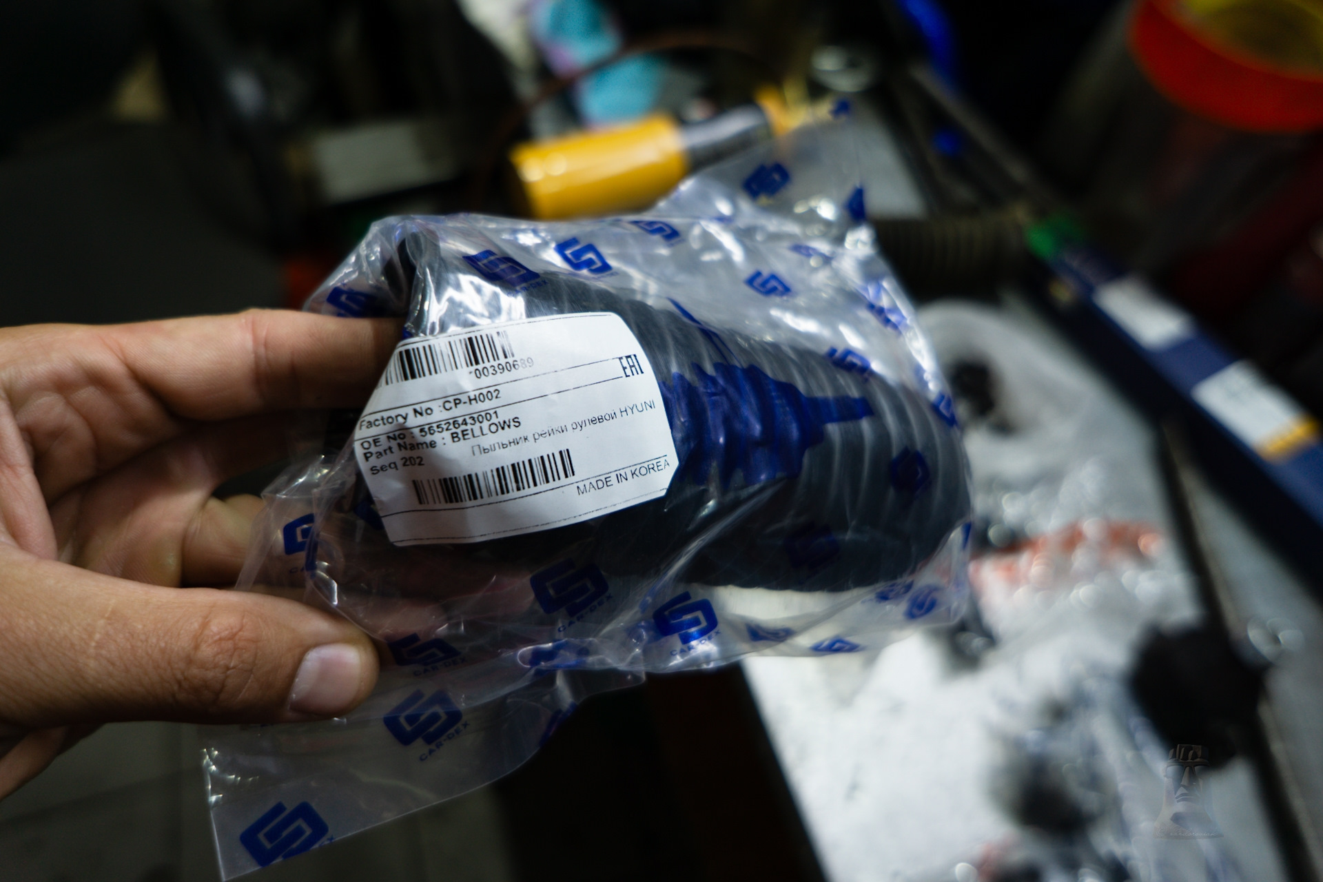 Ещё до поездки заметил потрескавшиеся пыльники на верхних шаровых, которые менял всего полгода назад, и еле слышный стук в рулевой тяге справа. На одной из дневок было время и интернет, заказал новые тяги, наконечники и — на всякий случай — пыльники рейки (как оказалось, не зря). Шаровые CTR у меня остались с прошлой замены — тогда хотел поменять только их, но в итоге заменил рычаги в сборе.