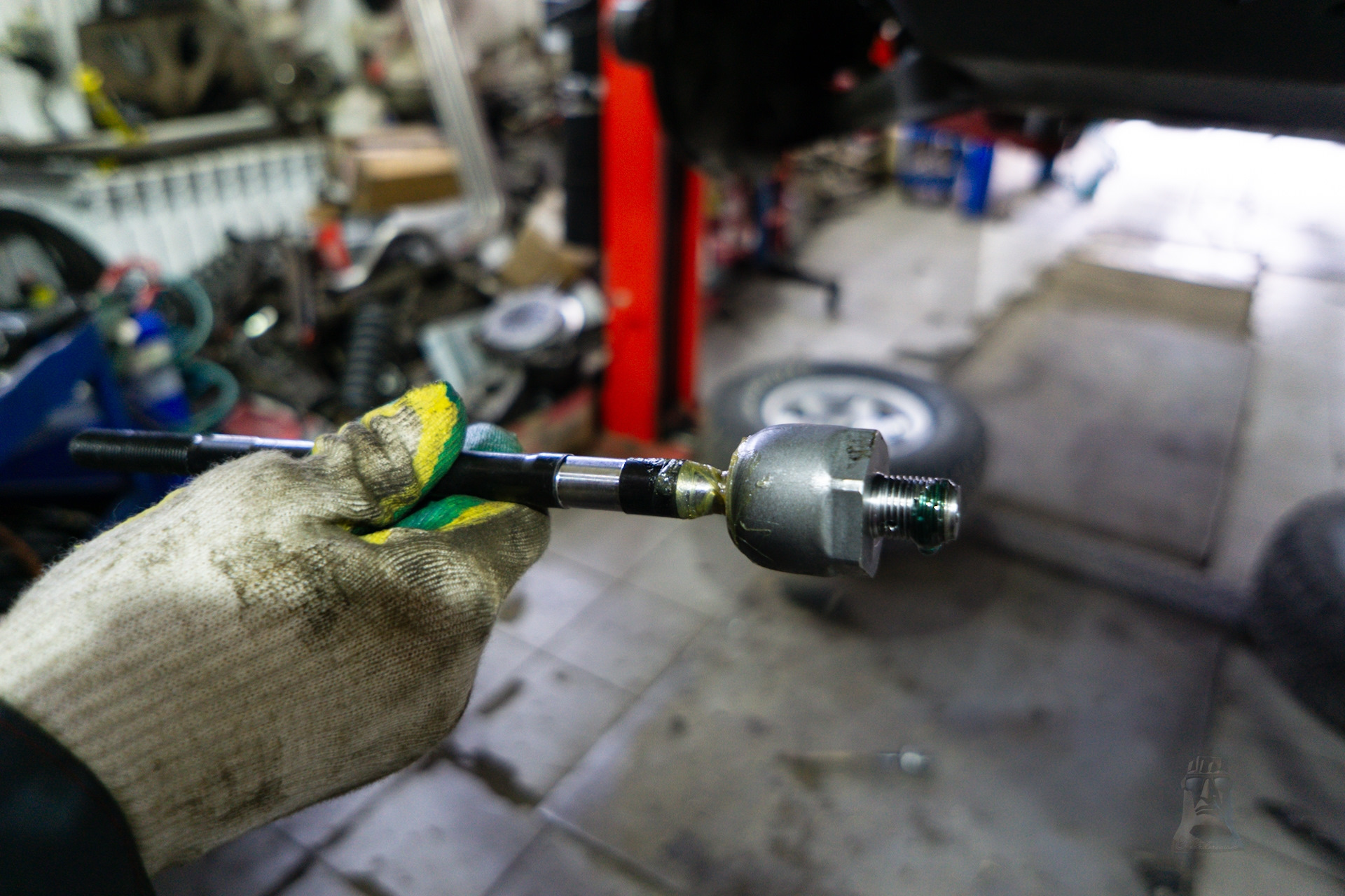 Пока оставалось несколько дней отпуска, заехал в дружественный сервис — заменить всё это и сразу сделать развал-схождение.