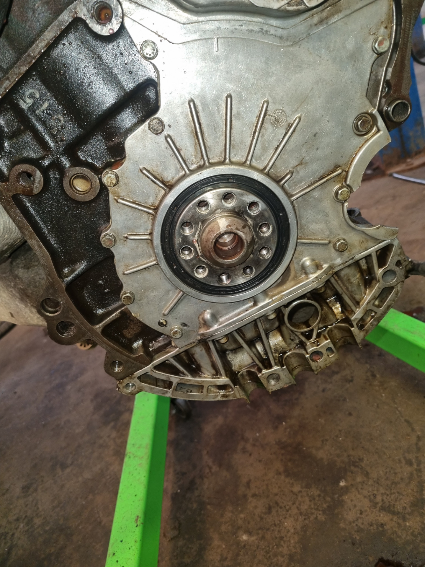 Всем привет! Собственно ссалось между мотором и коробкой, сильно, было заметно каждое место, где стоял туарег, масло выливалось примерно литр за 3-4 недели с момента покупки усиливалось. Я сразу решил, будем снимать дефектовать, не знал, что проще снять, так как стола у нас в сервисе нет, снимать все в сборе не хотел. Решил, что проще скинуть все эбало и потом мотор вперед.