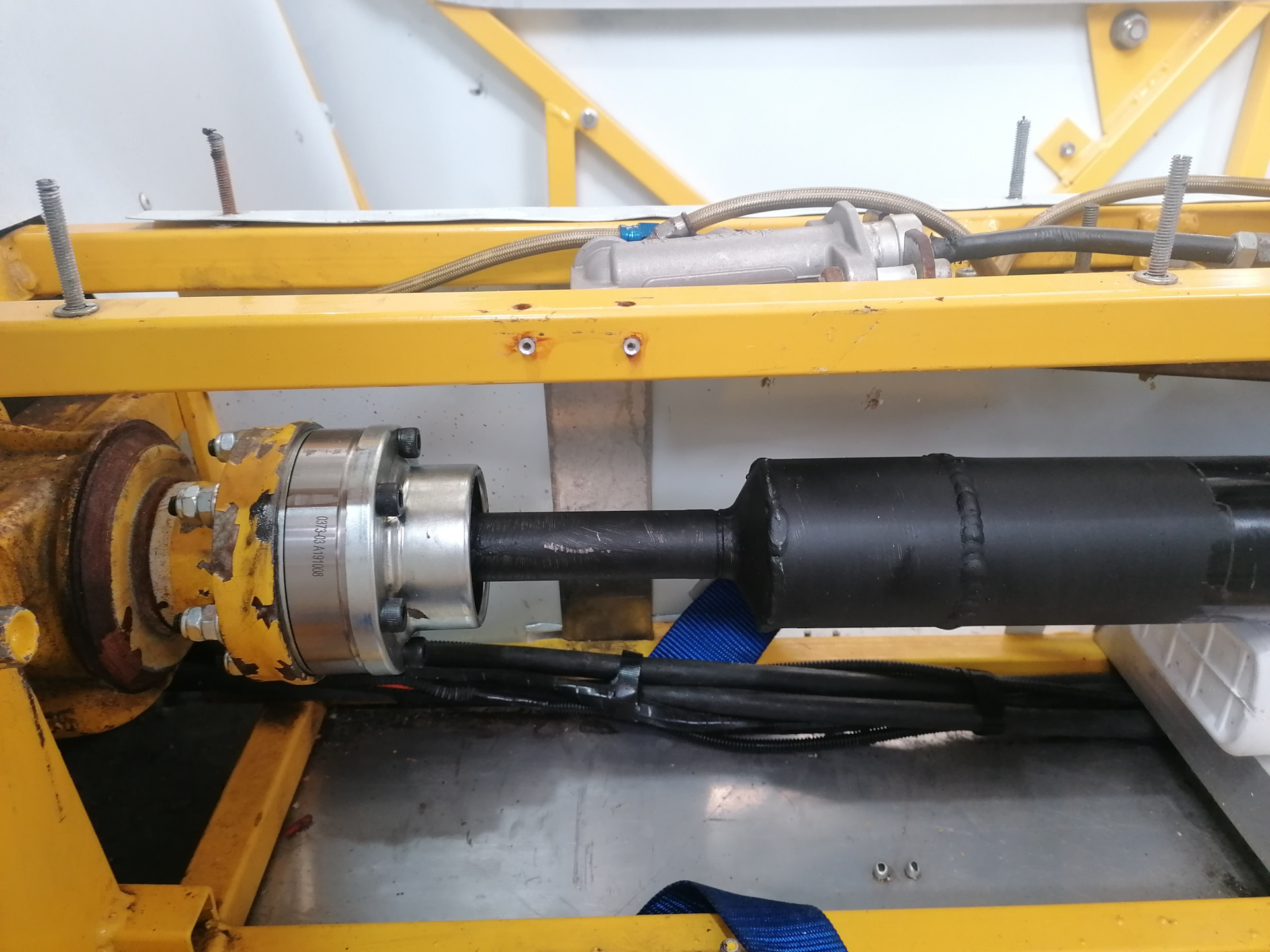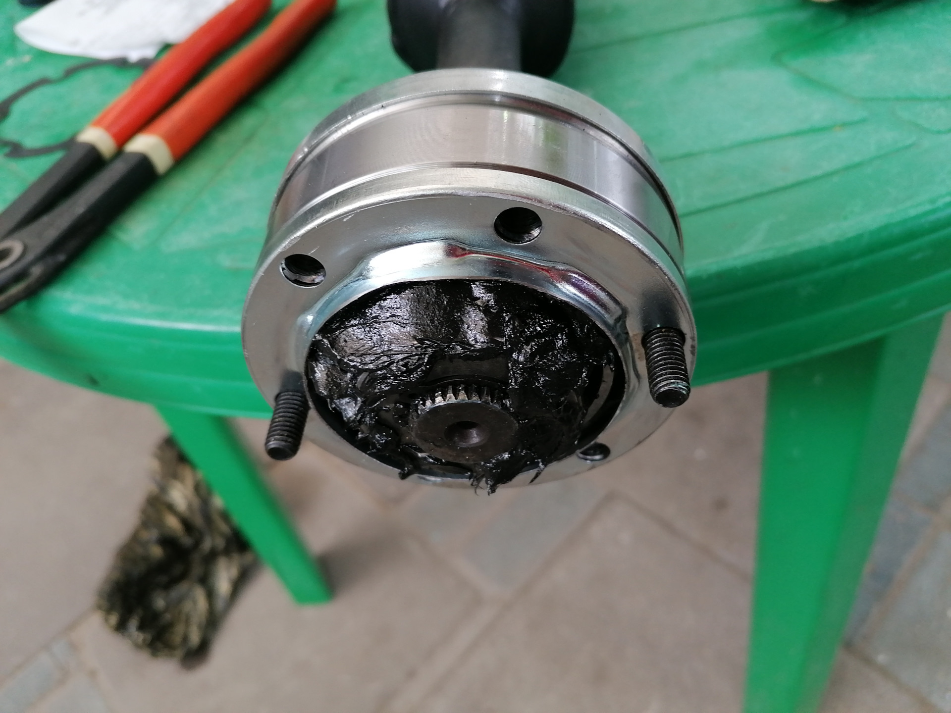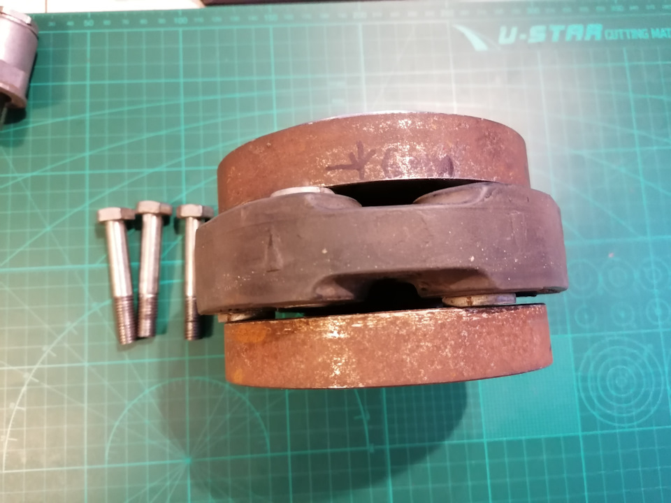 Но…Стучать кувалдой кардан хоть и перестал, но вибрации на скоростях больше 40 кмч никуда не делись. Попытка динамически отбалансировать этот комплекс потерпела крах. При разборке — сборке эластичной муфты баланс снова нарушался. А по другому собрать его на машине нельзя. Было принято решение выкинуть бублик. Вместо него и крестовины был вварен шрус, с подходящим к чашке заднего моста фланцем.