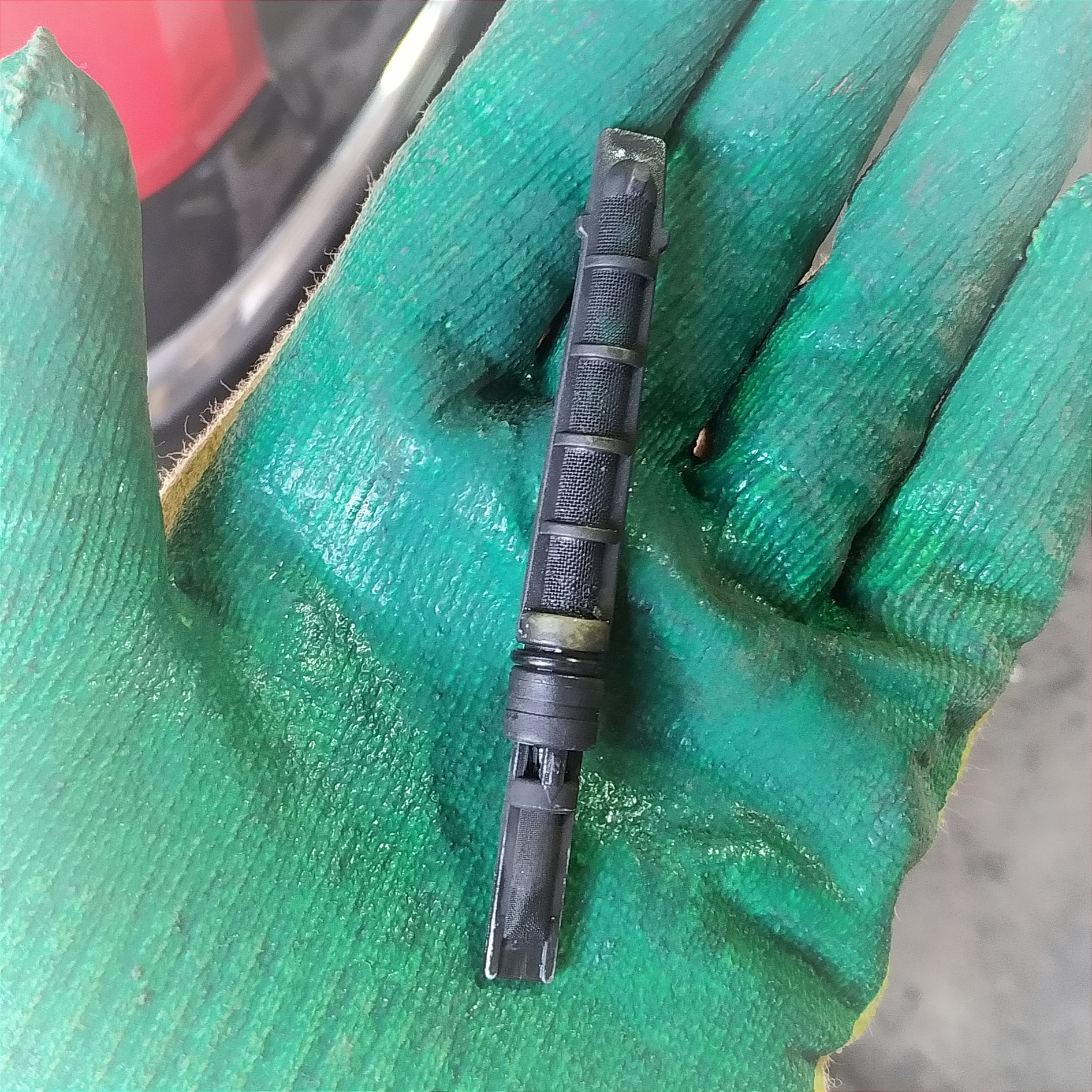 Интересный фильтр-рассеиватель, который ставится внутрь трубки магистрали кондиционера перед осушителем. Невозможно догадаться, что он существует, поэтому всегда нужно внимательно вникать в вопрос и спрашивать у более опытных людей (спасибо Дмитрий). Судя по внешнему виду старого фильтра, от него есть толк.