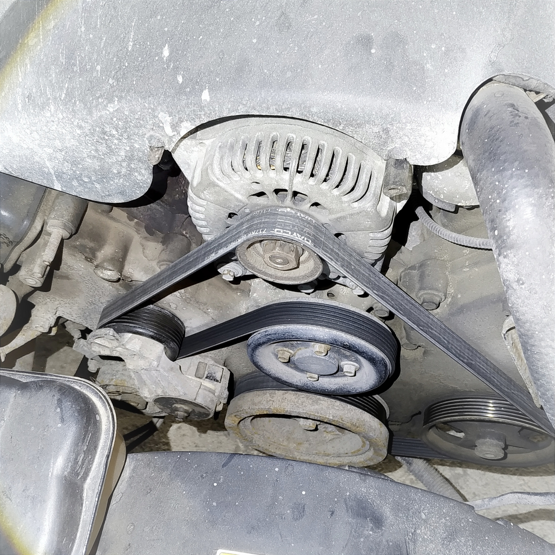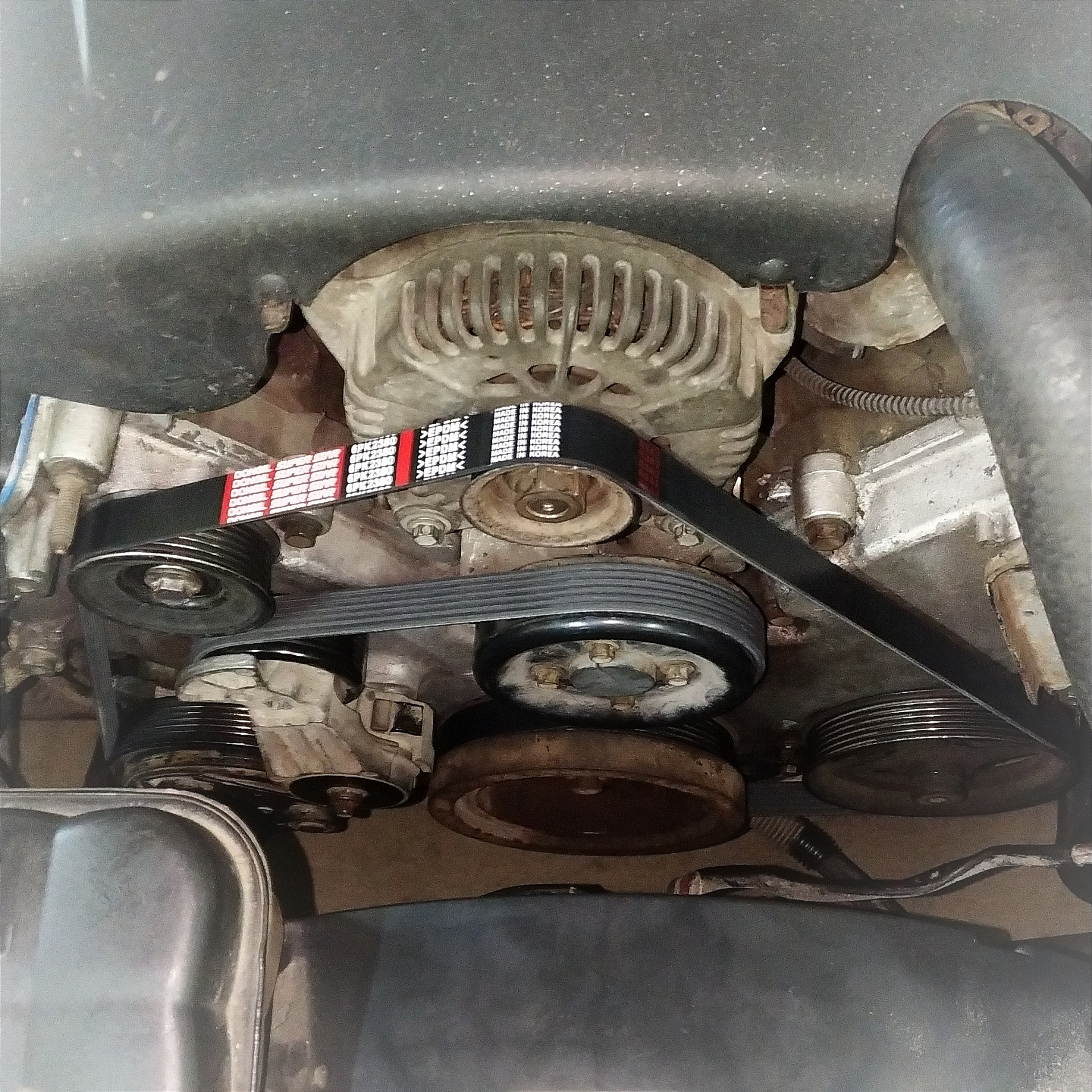 Из-за большего диаметра шкива стандартный ремень не подойдёт, поэтому заказал на 70 мм. длиннее. Взял самый простой Dongil 6PK2380, был в наличии. Говорят даже, что он корейский 🇰🇷, но мне думается, обычный 🇨🇳. Если всё нормально подойдёт, то заменим на Mitsuboshi.