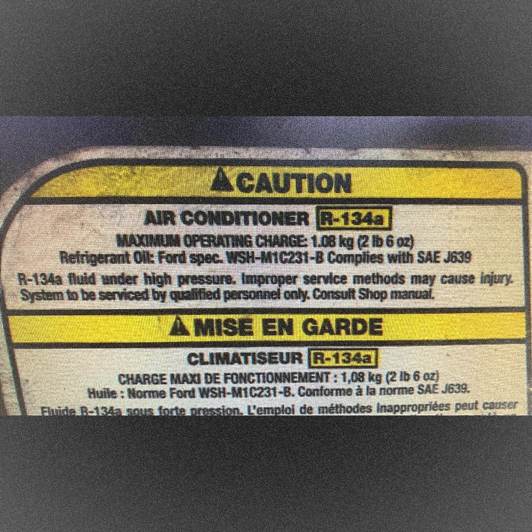 Фреон в Линкольне R134a. Масса 1,08 кг.