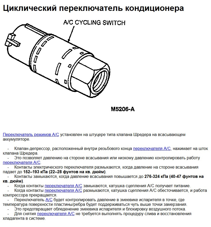 Поиск причины навёл на мысль о том, что неисправен датчик низкого давления, хоть кондиционер с ним запускался исправно. Ньюанс в том, что датчик низкого давления фактически является размыкателем системы кондиционирования. При снижении температуры фреона до отрицательной по Цельсию исправный датчик должен размыкать электрическую цепь и отключать компрессор. Мой датчик эту задачу не выполнял. Заказал его (их куча на разборках), ставятся на форды фокус, фиеста и прочие модели тех лет.