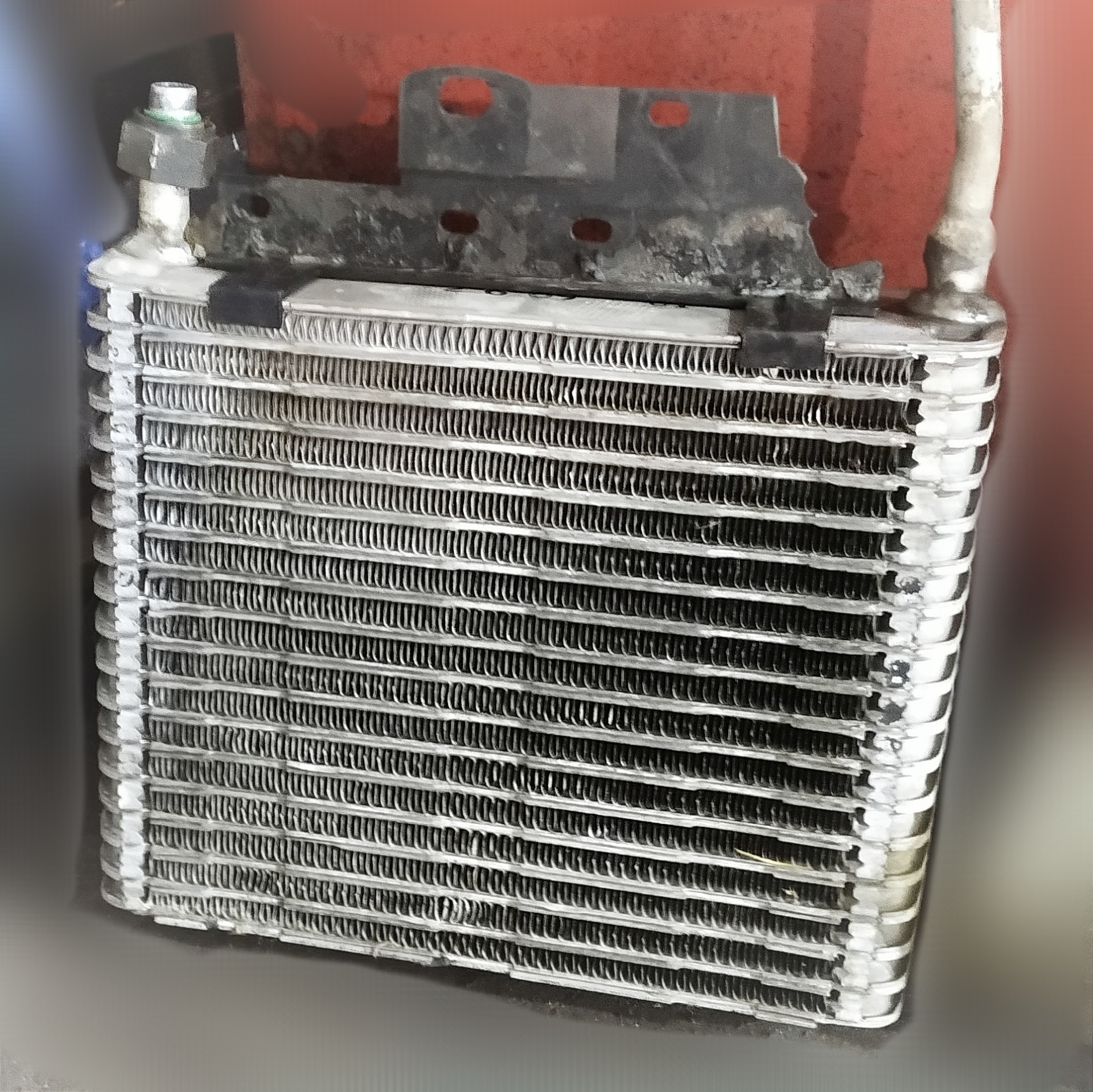 В обязательном порядке был извлечён испаритель кондиционера для промывки внутри и очистки снаружи. С течением времени его соты забиваются пылью и пухом, образуя плотный "войлочный" слой, значительно снижающий эффективность работы кондиционера.