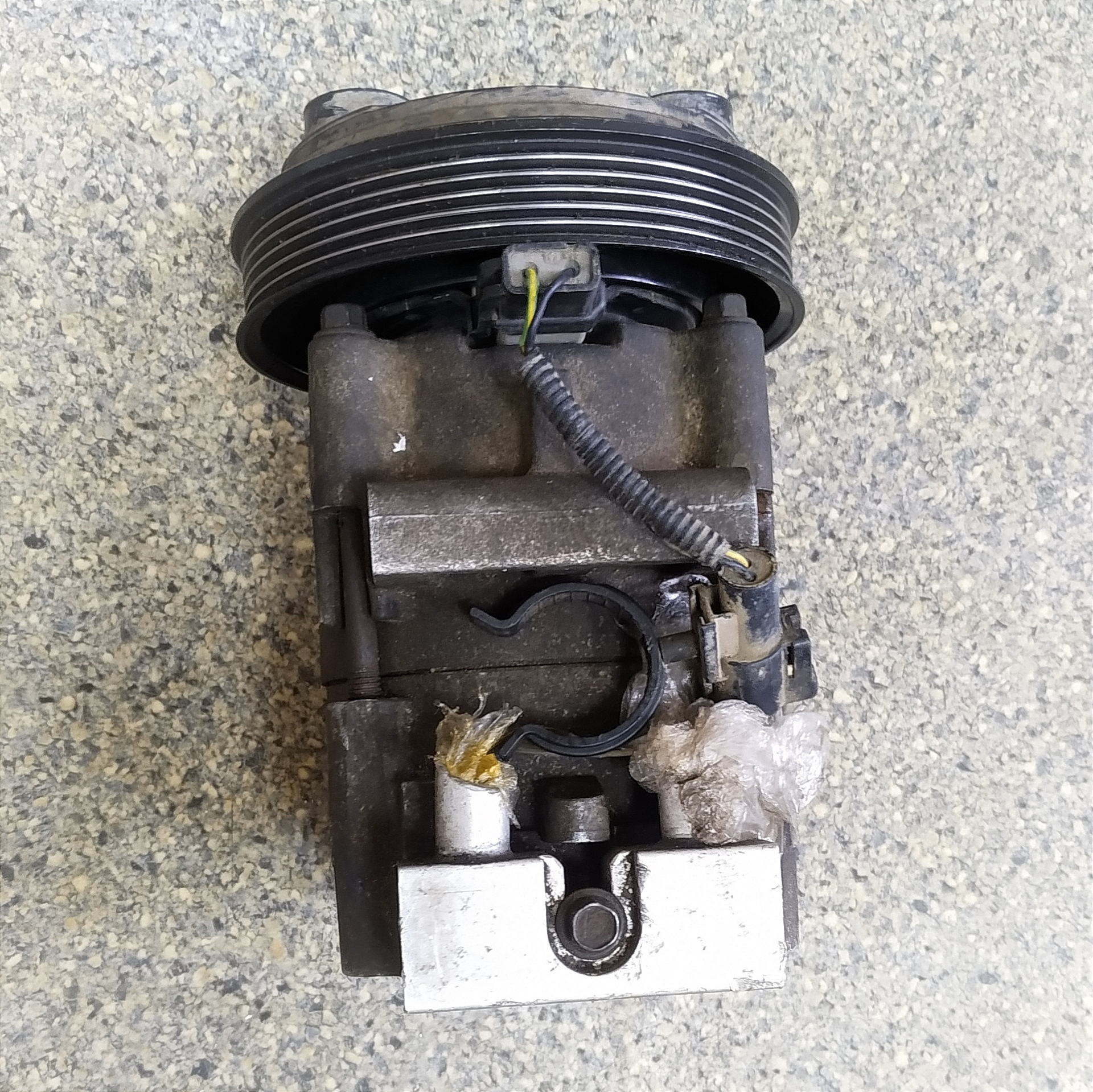 Фишка подключения может быть расположена на любую из 4 сторон (это видно из формы корпуса насоса) и поменять сторону не составляет труда. Для этого нужно снять электромагнитное сцепление и съемником отсоединить его (сцепления) электрическую часть. Также обслужили компрессор, заменив подшипник.