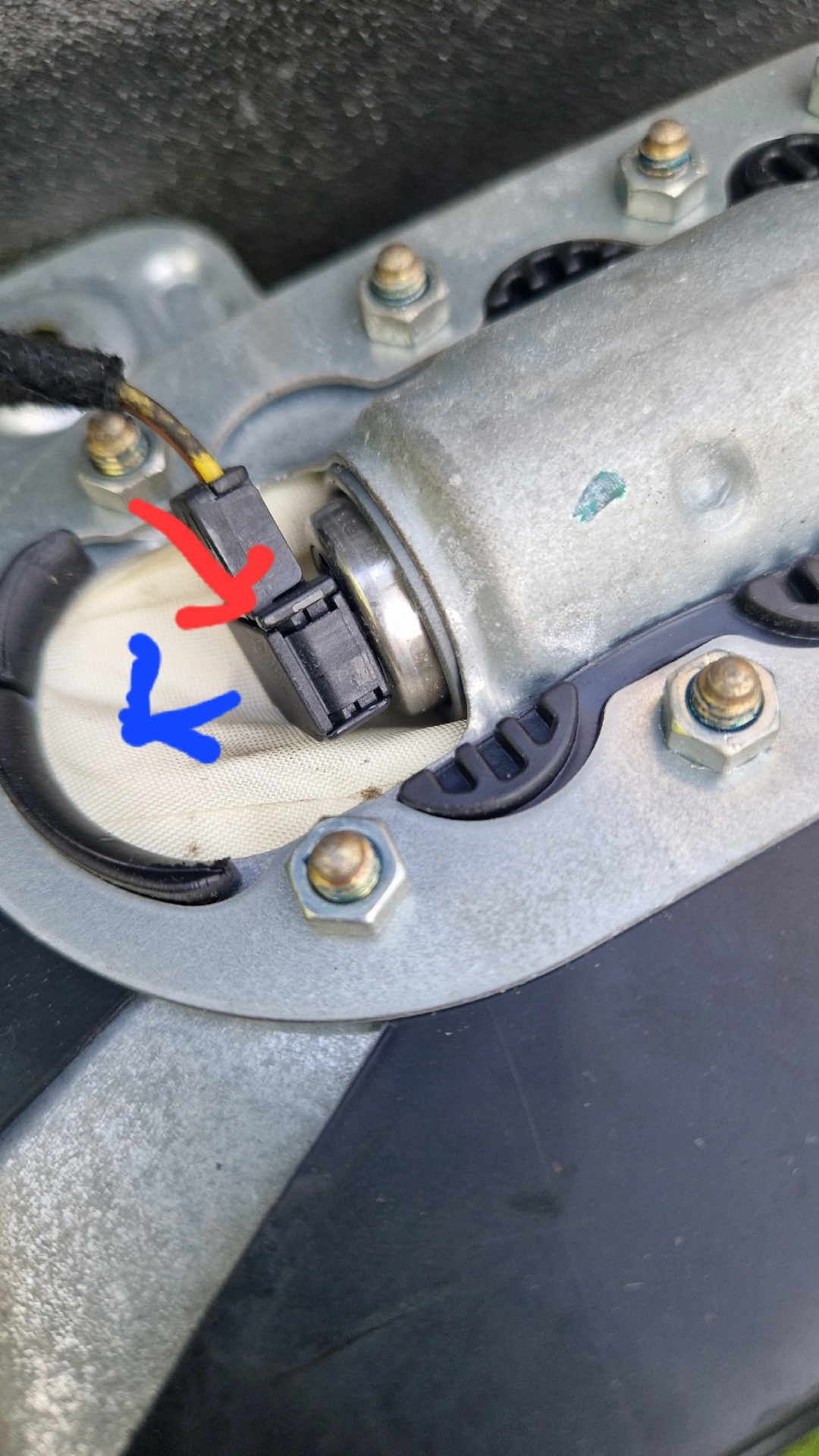 Разбираю машину по оригинальному каталогу и " Инструкции "- bmw tis . Красная стрелочка — вставляется плоская отвертка и двигается в сторону синей стрелки . Вытаскивается провод так же в сторону синей стрелки .