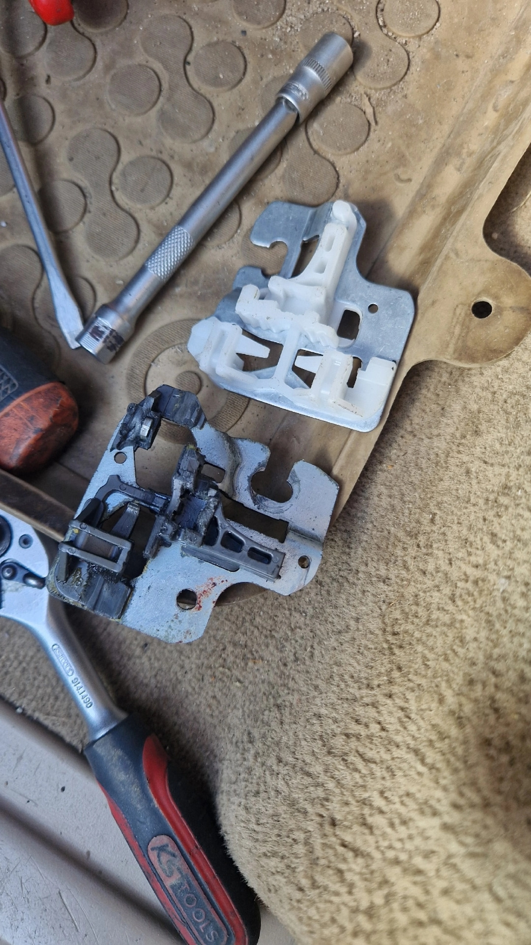 6. — Заменил пластинки и клипсы в стеклоподъемнике . Причина этому была — опускаешь окно в самый низ и оно падает . Поменял, поигрался и сломал снова xD . Забил, решил сделать позже . Но тут недавно окно упало само . Купил б/у, но в очень хорошем состоянии стеклоподъемник от рестайлинга и благодаря отцовской помощи поменяли вдвоём, довольно быстро весь стеклоподъемник (Фотографий нет) . Самое интересное, что после того как подушку снял и поставил — вылезла ошибка airbag . Пробовал скинуть истой и инпой — не помогает . Перезагрузка SRS — будет в июле