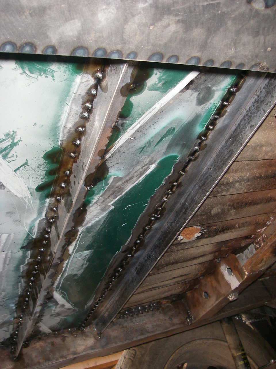 Вид снизу… Если сверху я решил заплавить все сплошным швом, то снизу точки служат больше дополнительными упорами, чем самим соединением…