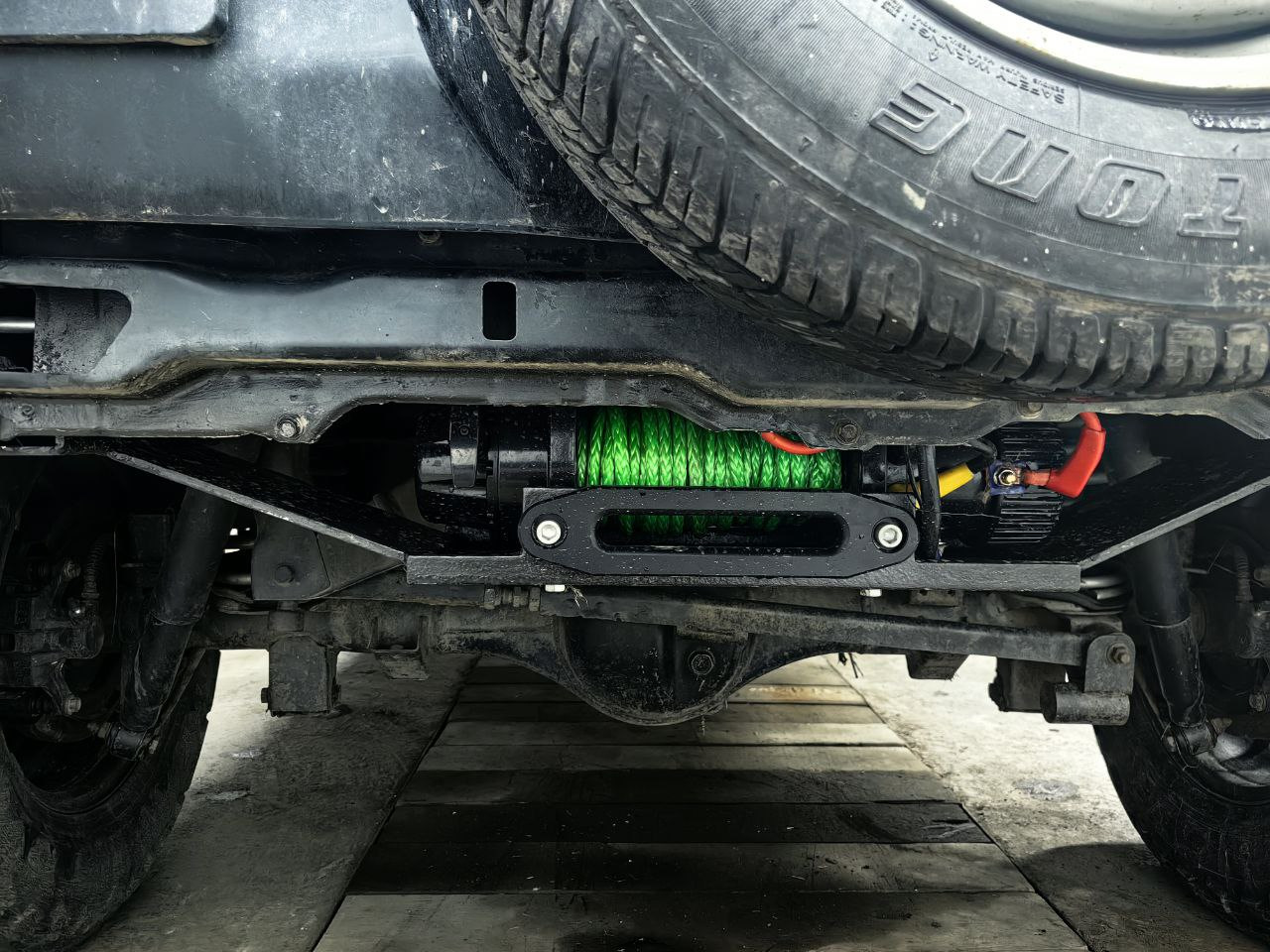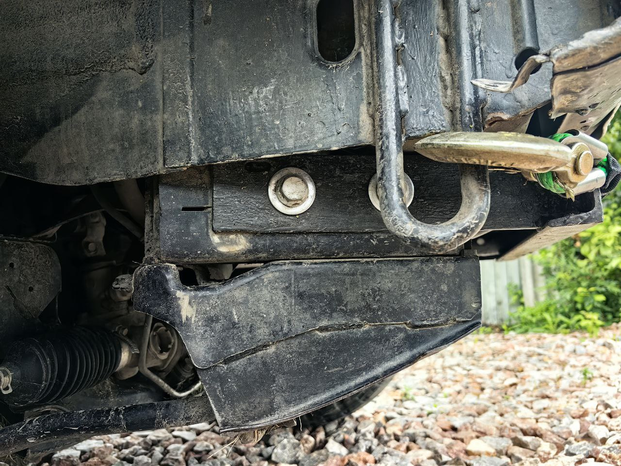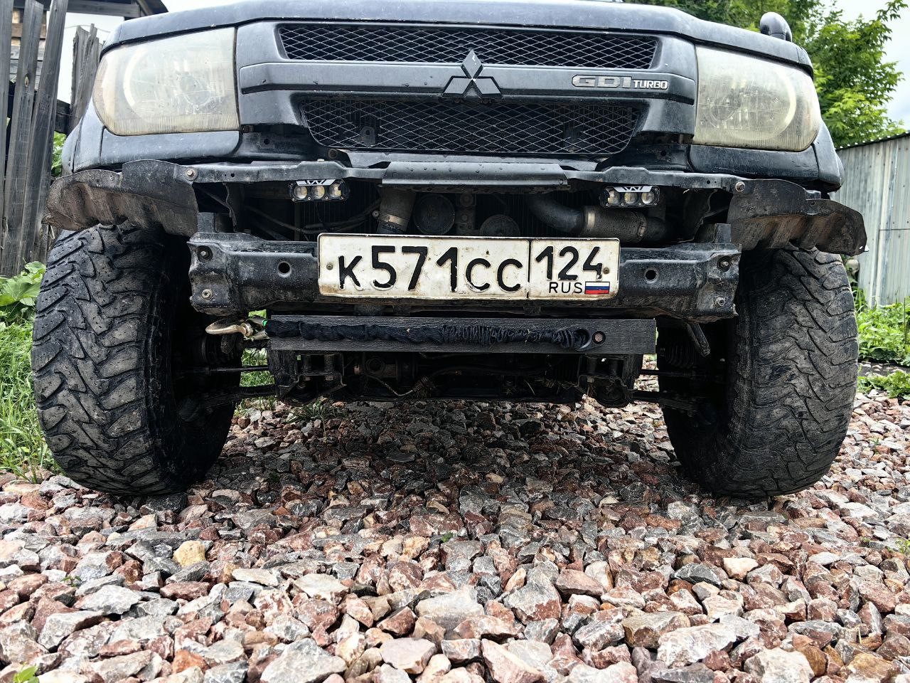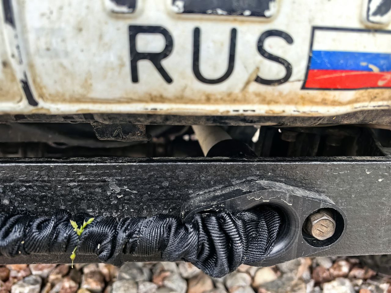 На текущий момент очевидно что нужно приварить на передний кронштейн место для крюка, чтобы не цеплять за буксировочный при лебежении назад, чуть отодвинуть пп трубу от глушителя, стоит внатяг и поджарилась (на фото видно), но трос не пострадал, сделать назад новые буксировочные проушины и съемный фаркоп, который будет крепиться к площадке лебедки.
