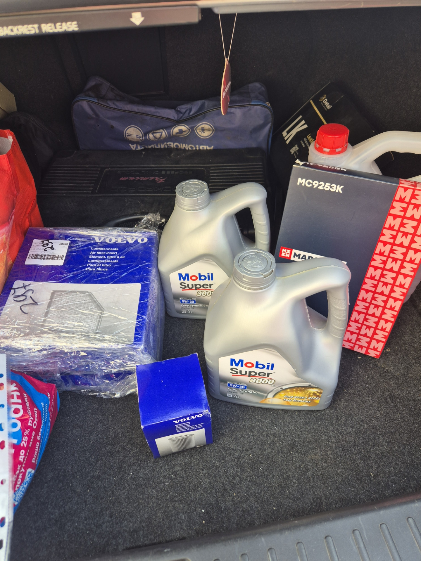 Поменял масло, заливаю последнее время mobil super 3000 formula fe 5w30 a5b5 (автомаг 8к за 8л), масляный фильтр оригинал (toyota-opt.ru 1350р), салонный фильтр с озона (700р), воздушный фильтр оригинал (volvo 77 700р взял сразу 2 на будущее)