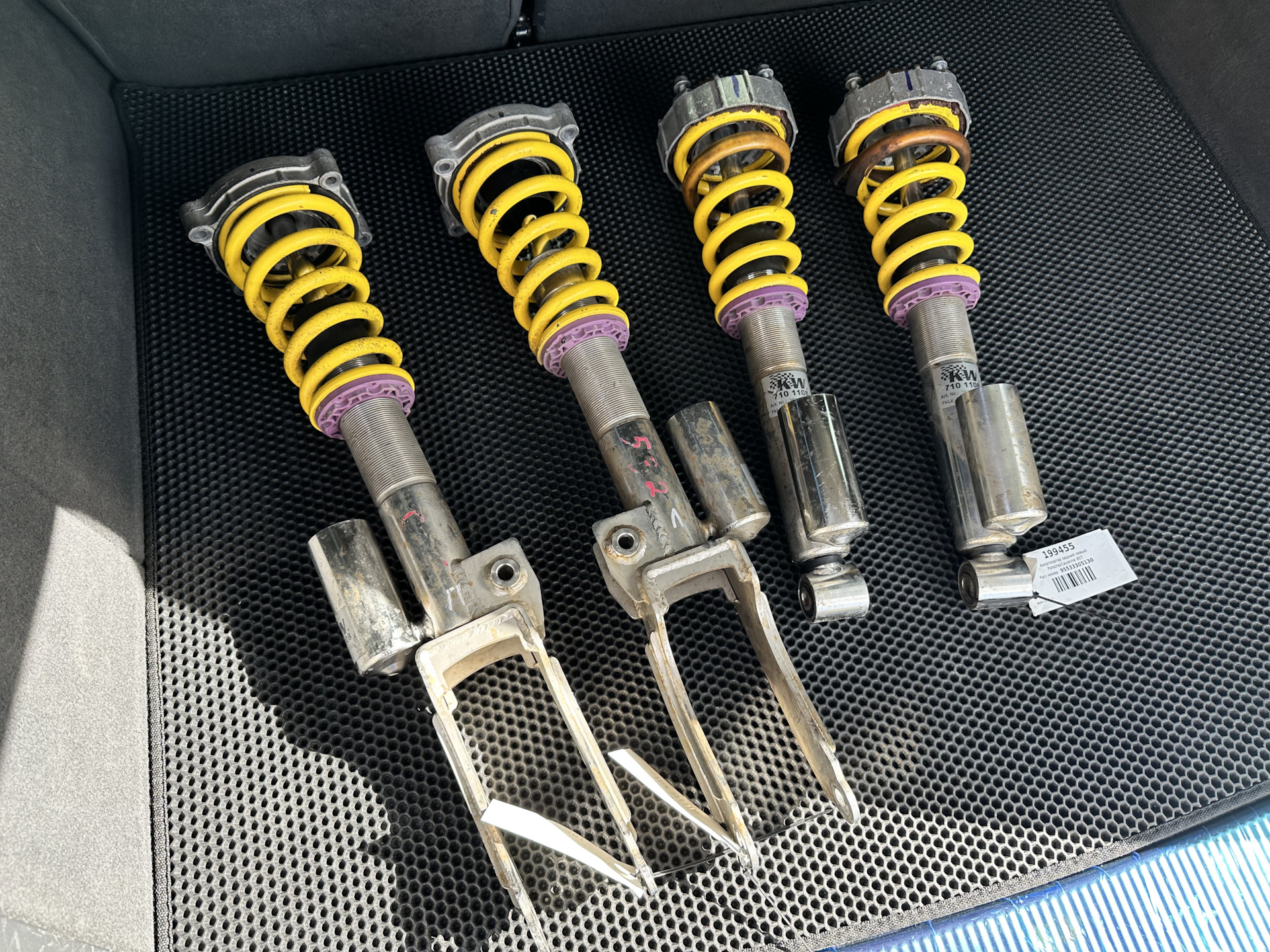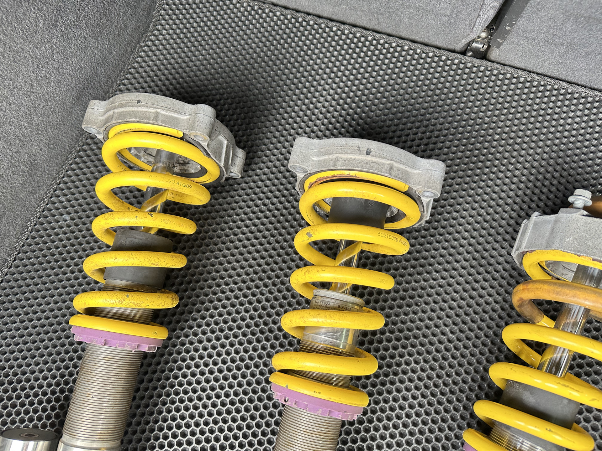 На протяжении года думал как выйти из этой ситуации. С пневмо подвеской на Туареге я, поездил не мало и знаю, что это такое, собрал всю информацию и приготовился к закупке запчастей и установке, но мне попался комплект винтовой подвески от Каена с маленьким пробегом и в отличном состоянии. Чуть чуть подумав, понял, что нужно пробовать!
