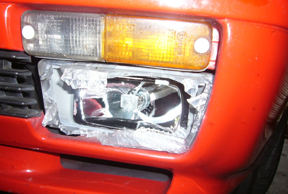 Получил камнем в левую ПТФ. Как будто пуля попала — только грохот и стук осколков услышал. На скорости 90 кмч на загородной дороге, от впереди идущей машины…