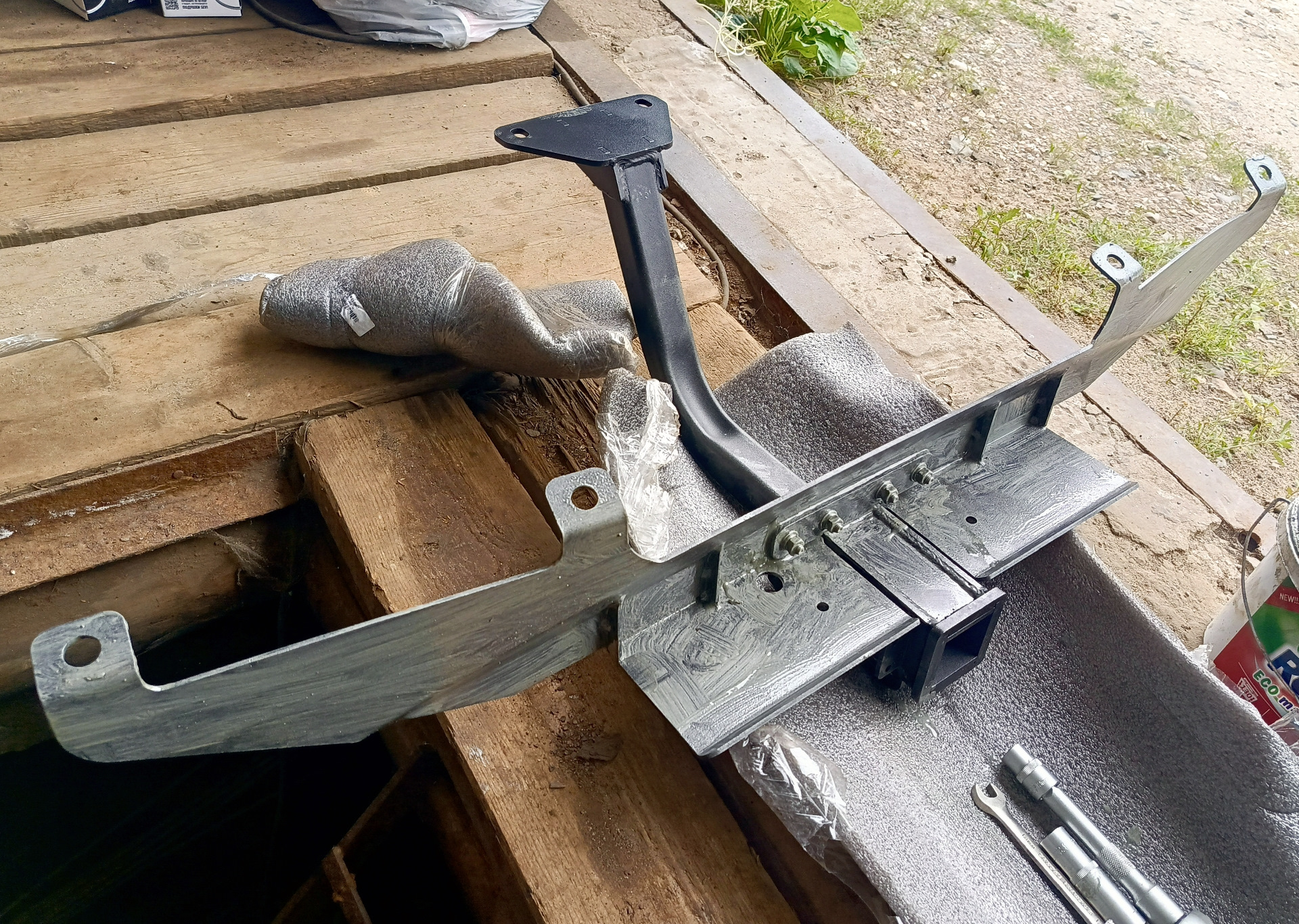 Собрал ТСУ. Всё замазал мовилем с цинком+ консевационное масло. И хоть фаркоп изготовлен и покрашен очень качественно, мазюка не навредит.