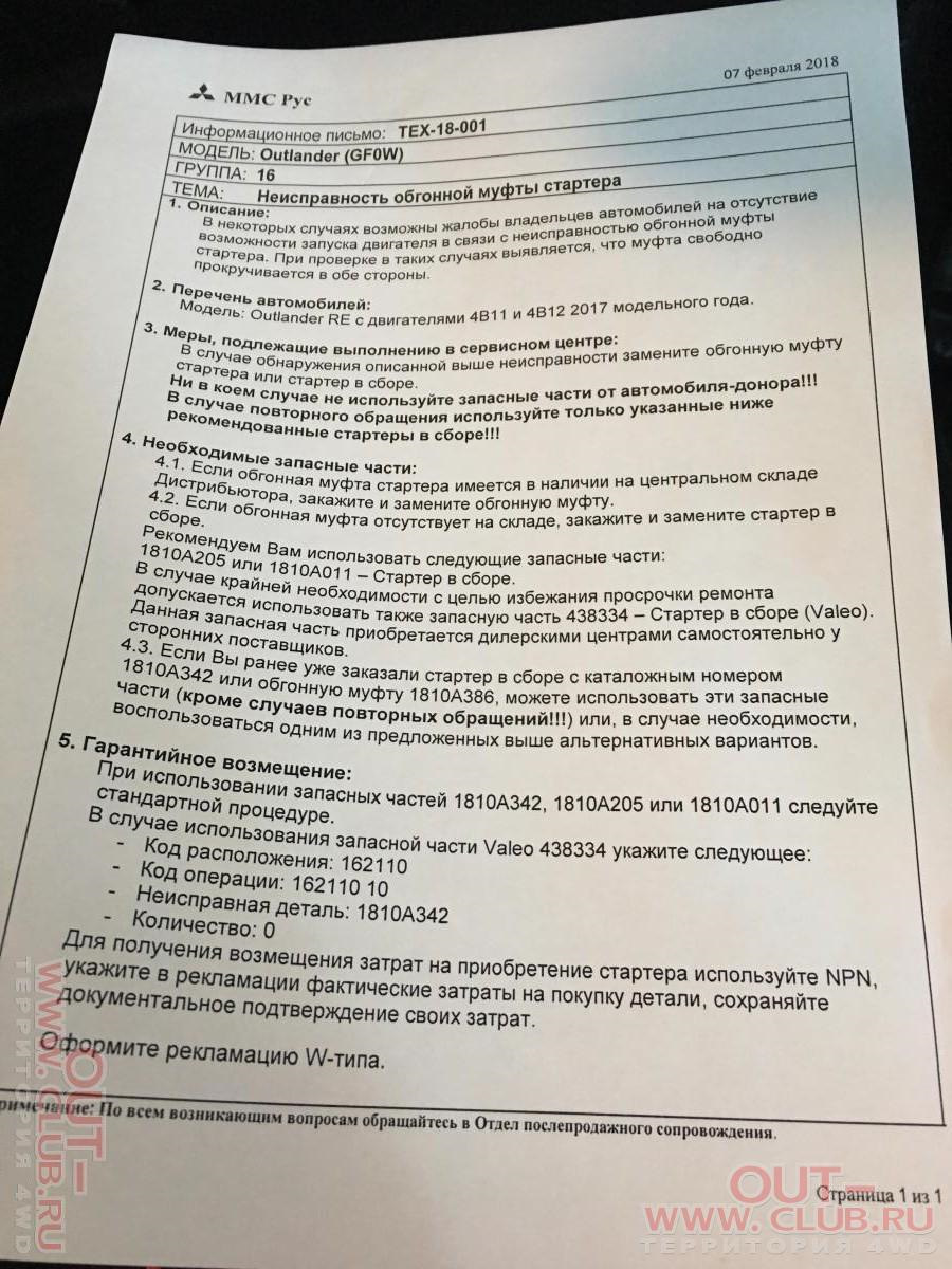 Продавец утверждал, что стартер подойдёт для Mitsubishi Outlander 2018 года с двигателем 4B11.
