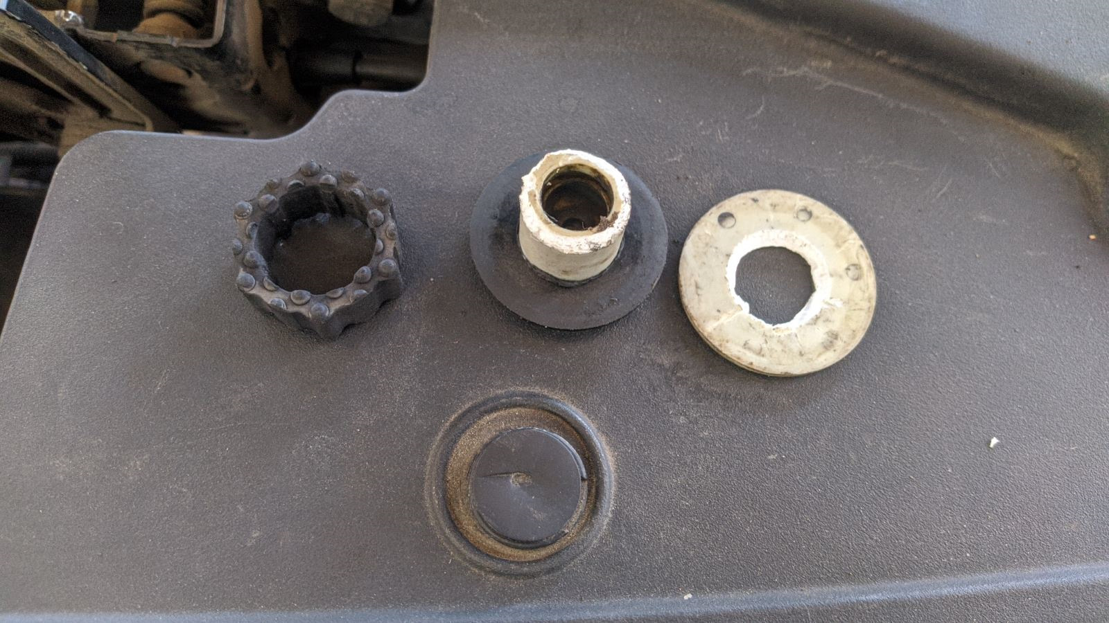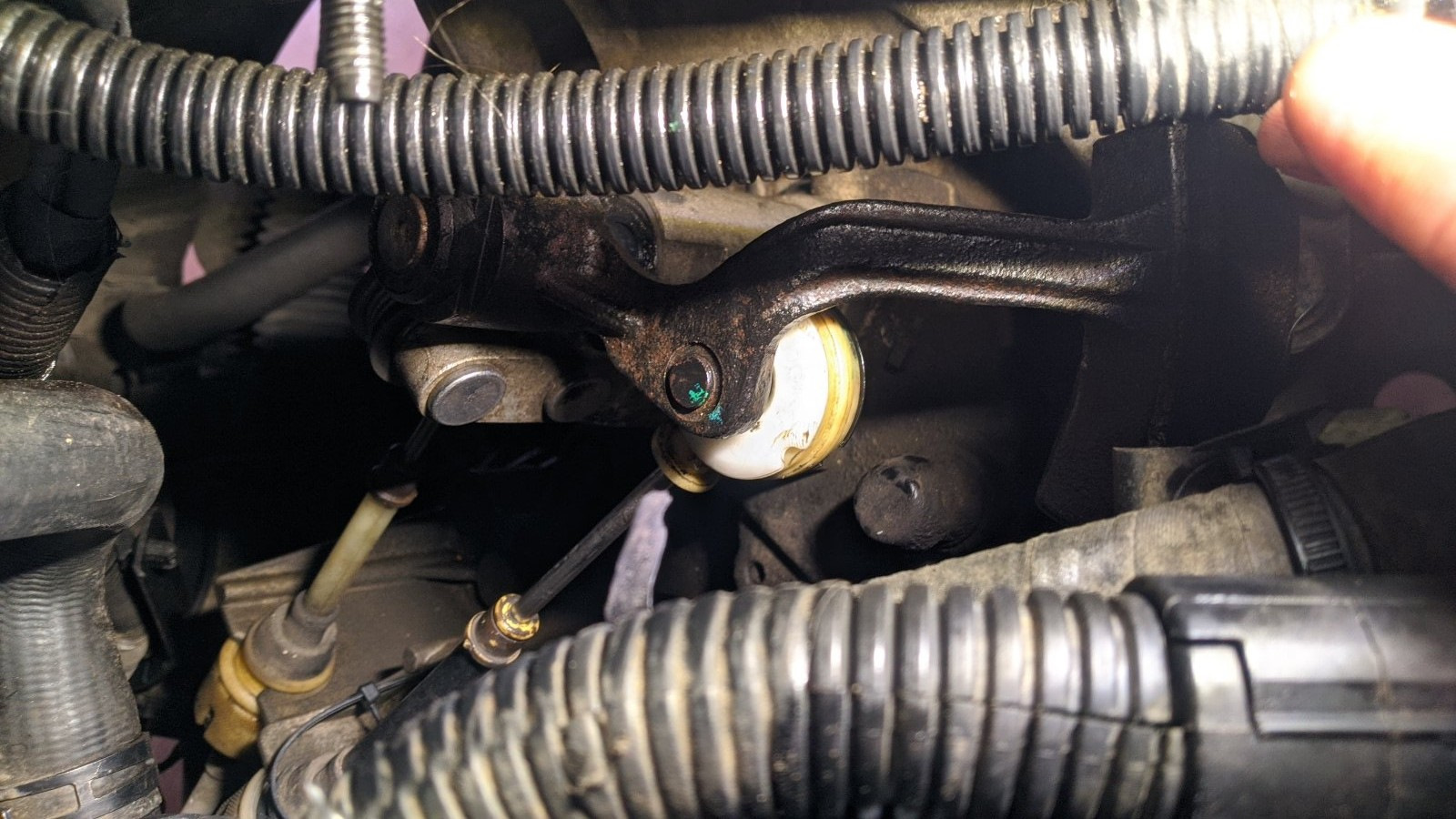 Как я уже писал ранее, Арнольда настигла очередная врожденная болезнь, а именно износилась втулка крепления троссика КПП на его рычаге переключателя.