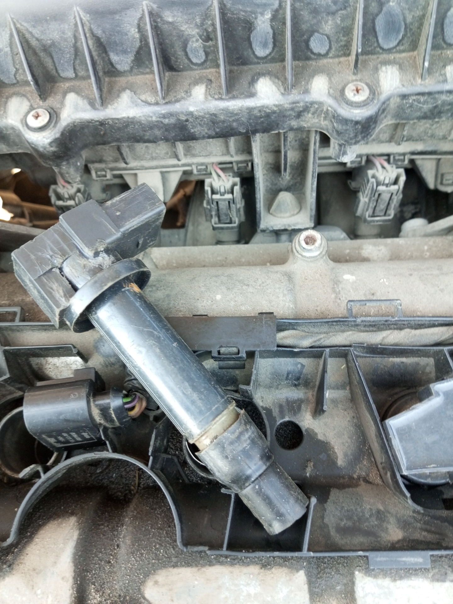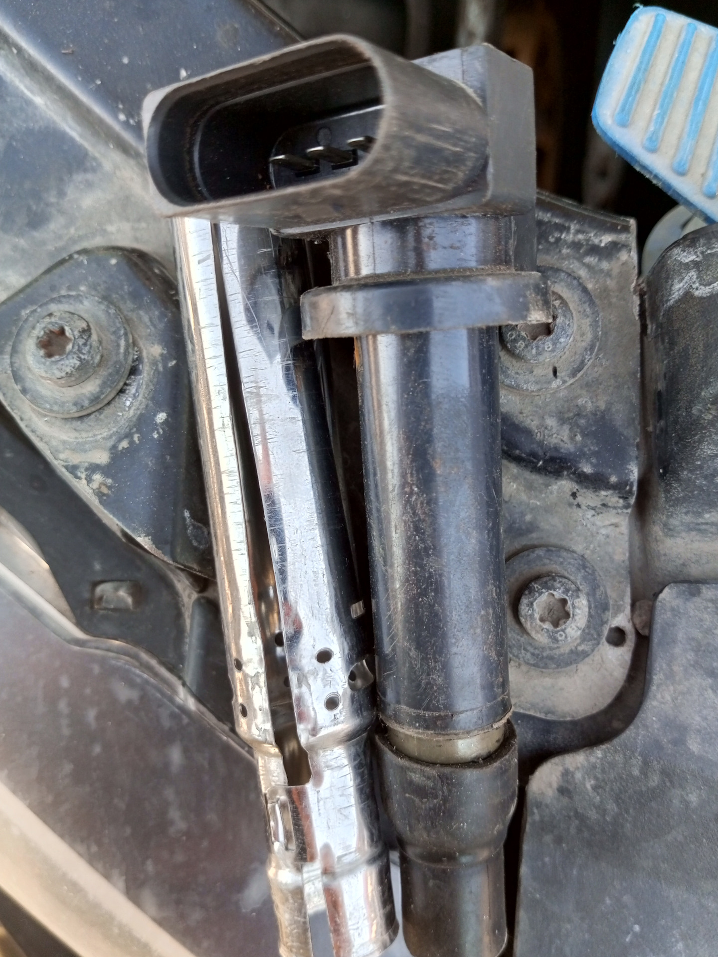 Хорошо, что кусок не упал в колодец, доставать его — то ещё удовольствие. Да и вдобавок ко всему двигатель стал троить и дёргаться на холостых оборотах. Поэтому было принято решение заменить катушки на новые. Ремкомплекты не рассматривал, считаю, что лучше нового ничего нет.