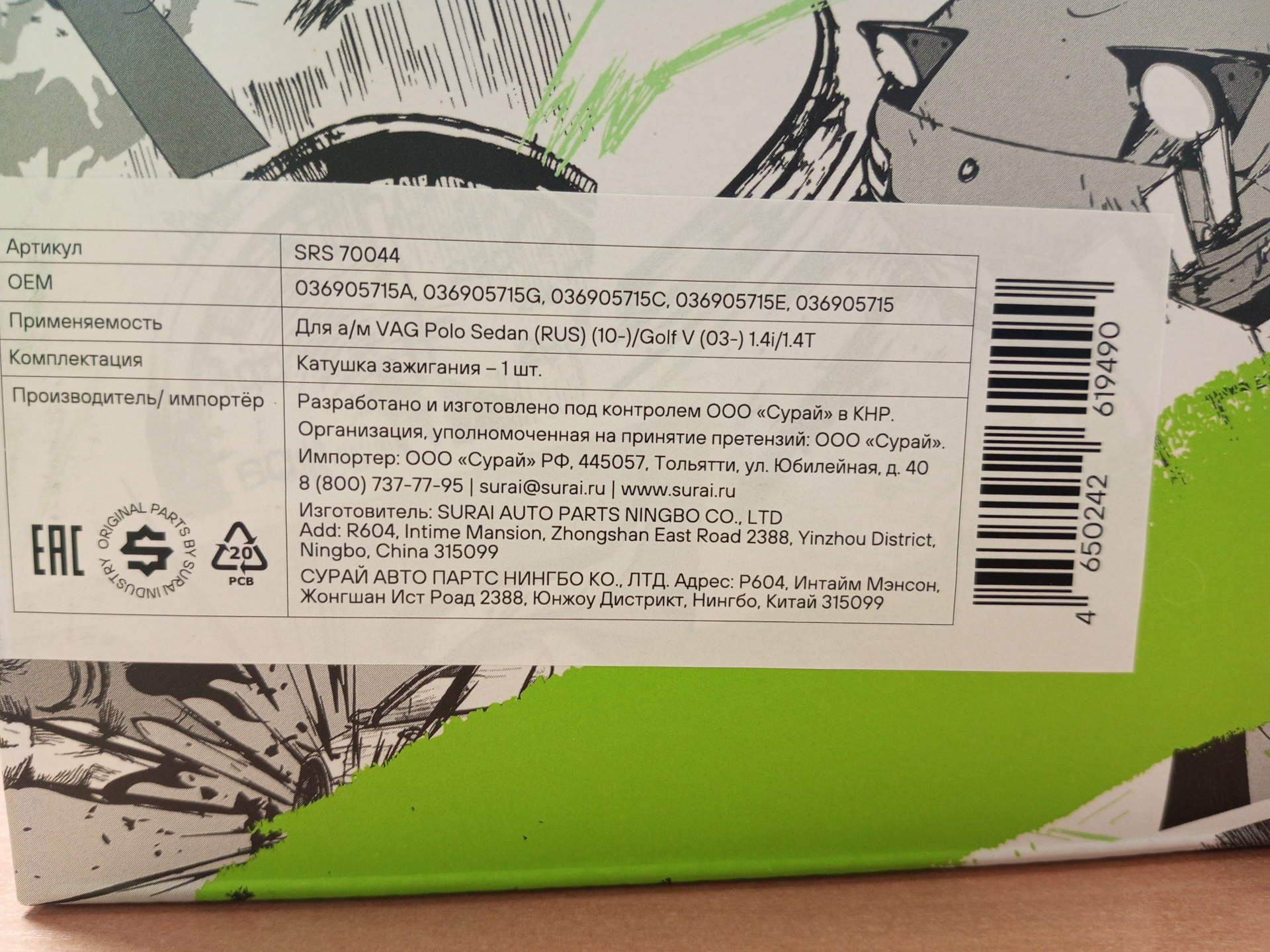 Решил ради интереса посмотреть цену оригинала. Стоимость слегка насторожила! Я точно езжу на Поло?! Немного изучив предложения, остановил свой выбор на катушках зажигания Surai SRS 70044 . Цена вполне приемлемая, да и компания уже знакома, датчик ABS работает исправно! Стоимость комплекта катушек Surai составила 5000 рублей.