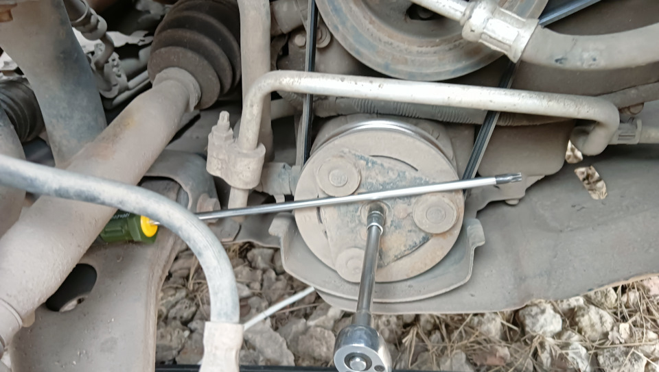 При включенном кондиционере подшипник шкива компрессора не работает, потому что шкив вращается вместе с валом. Он работает при выключенном компрессоре, когда шкив вращается, а вал нет. Очень странно, как это он шуршал, находясь в покое, а не в движении 🤔