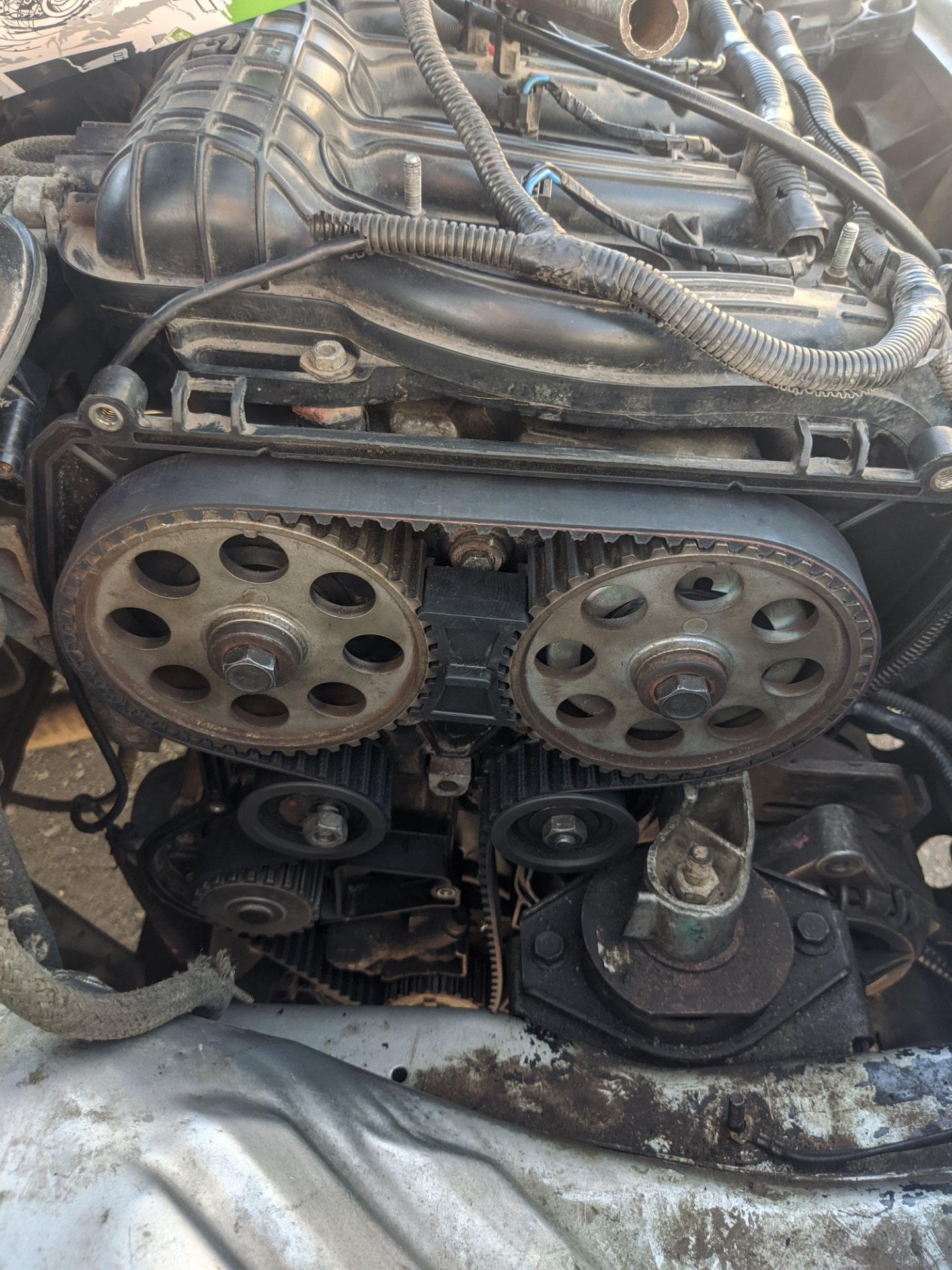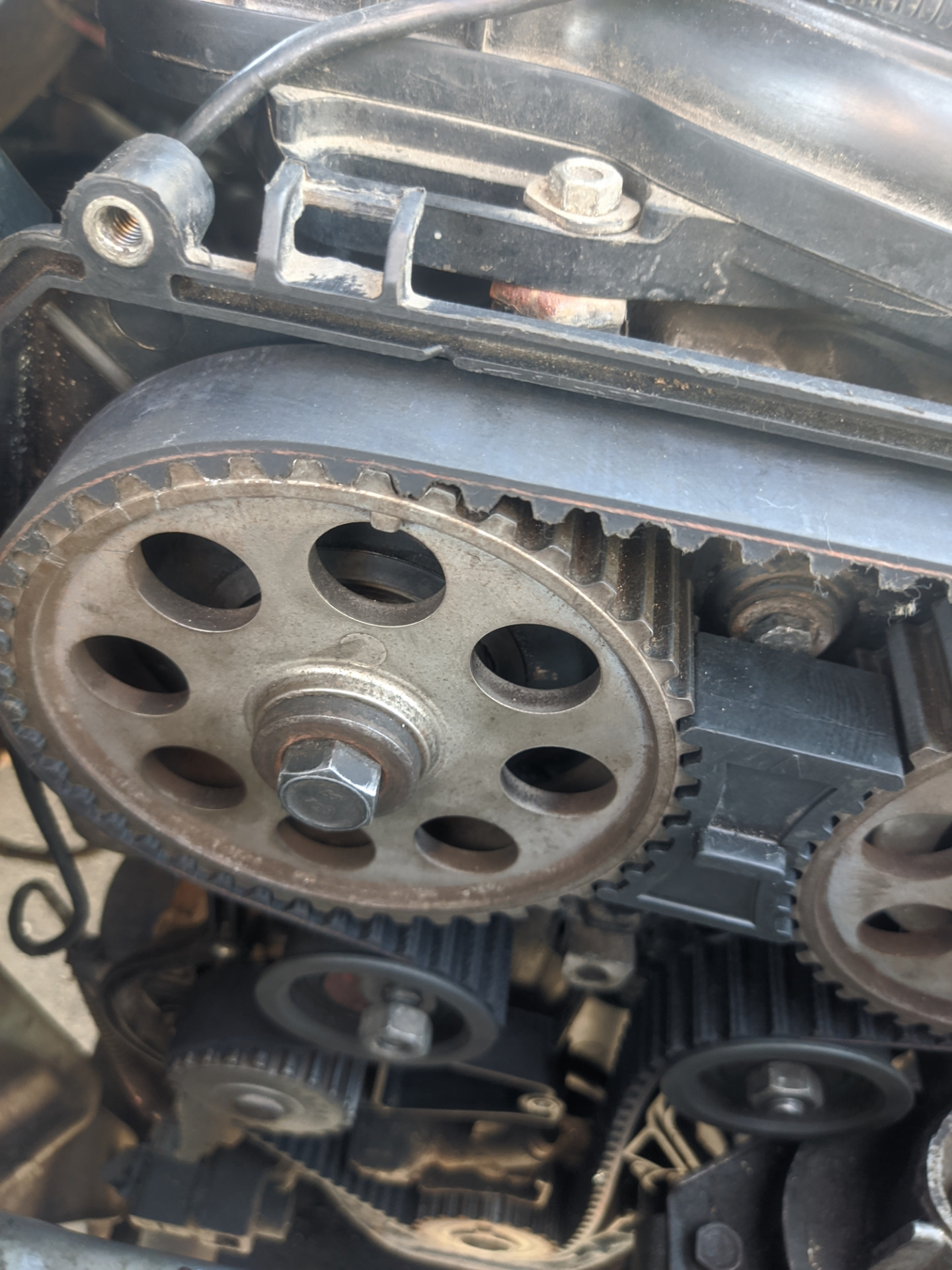 В этом узле капаюсь уже не первый раз все разбиралось спокойно около дома не спеша и с пониманием происходящего .Мой ремень уже устал пошли трещинки .