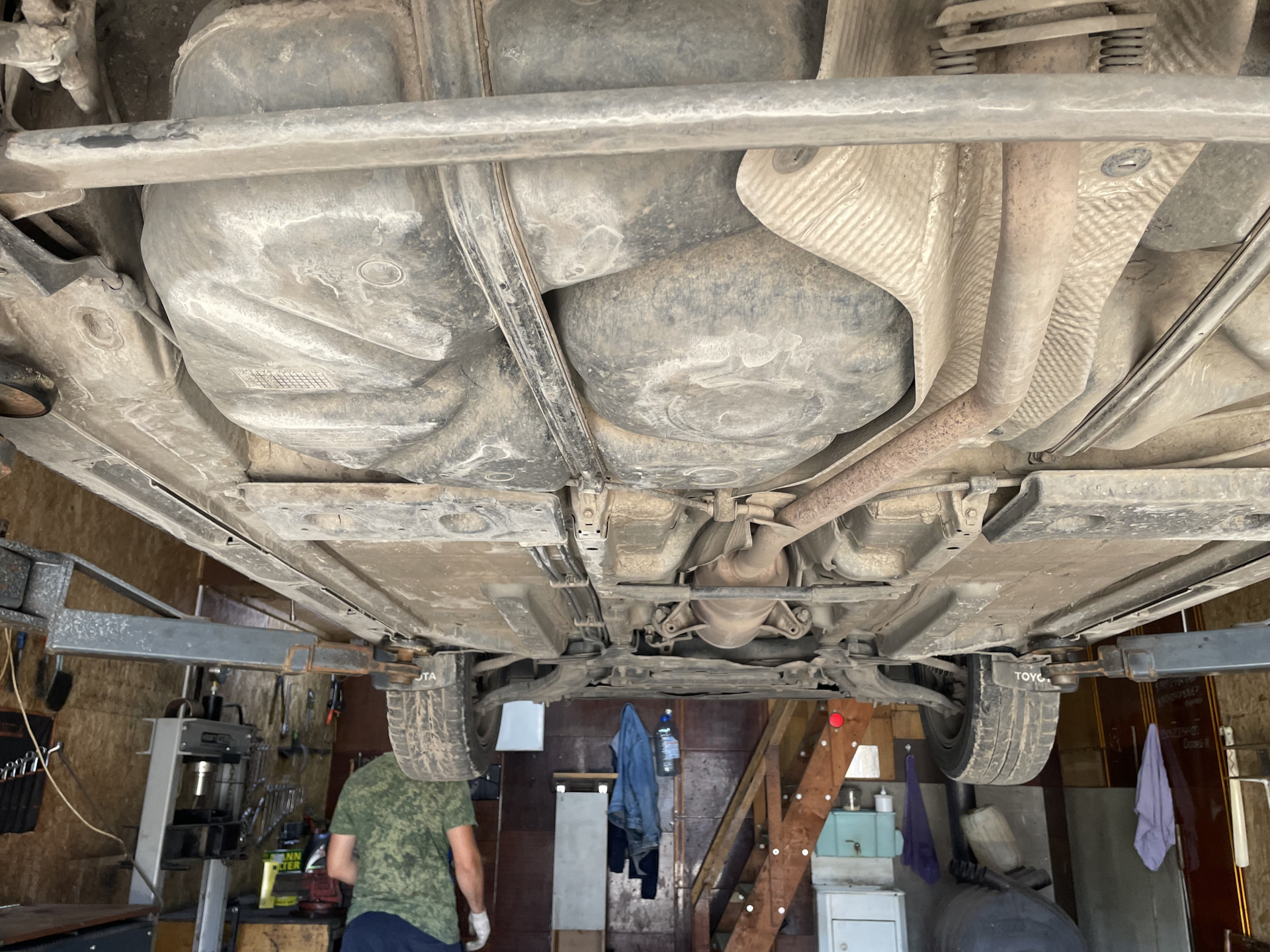 Оправился на сервис самообслуживания с подъемником, благо у нас в Нижнем есть ребята, которые предоставляют подобные услуги. И первым делом начал с осмотра днища.