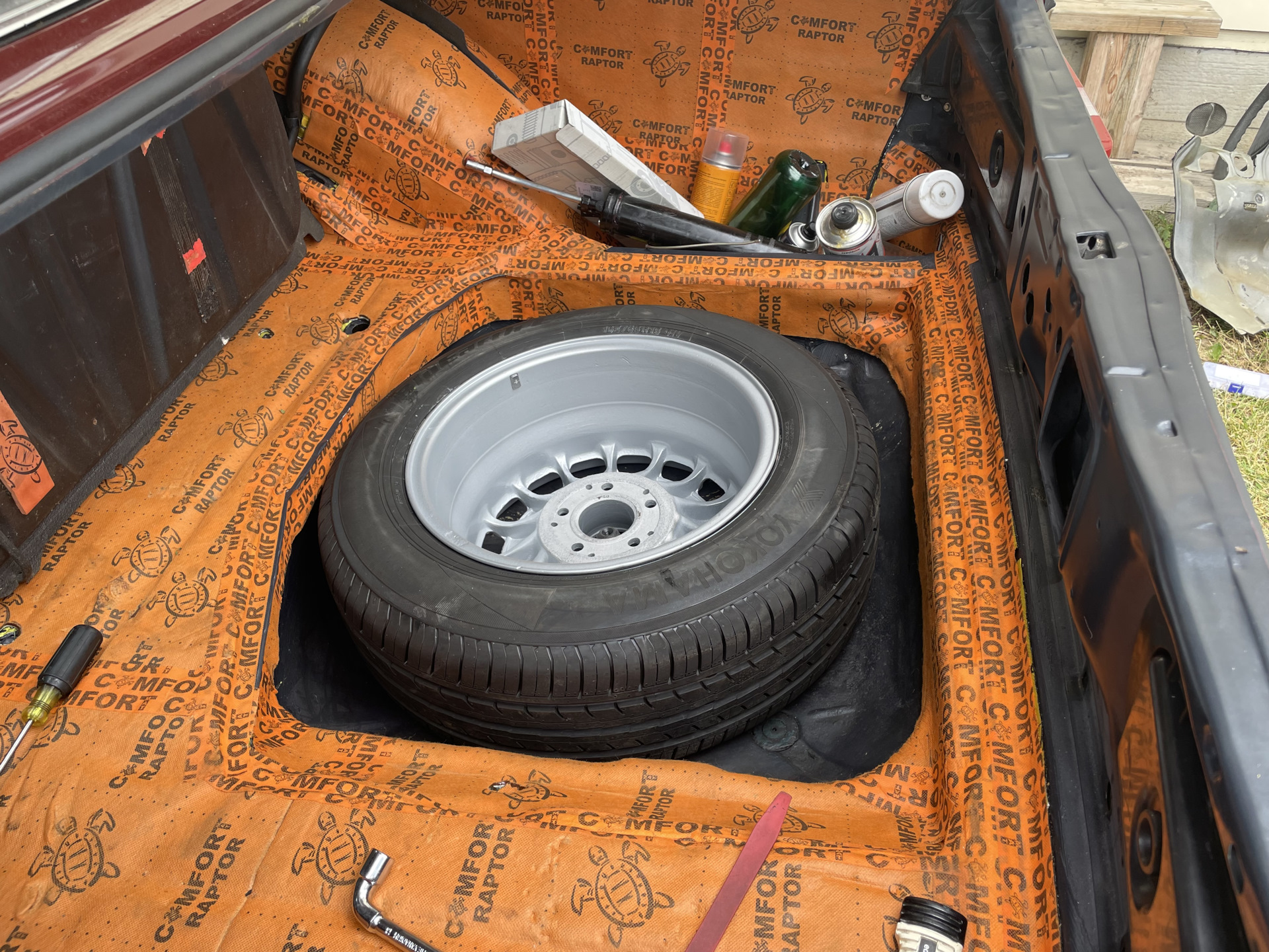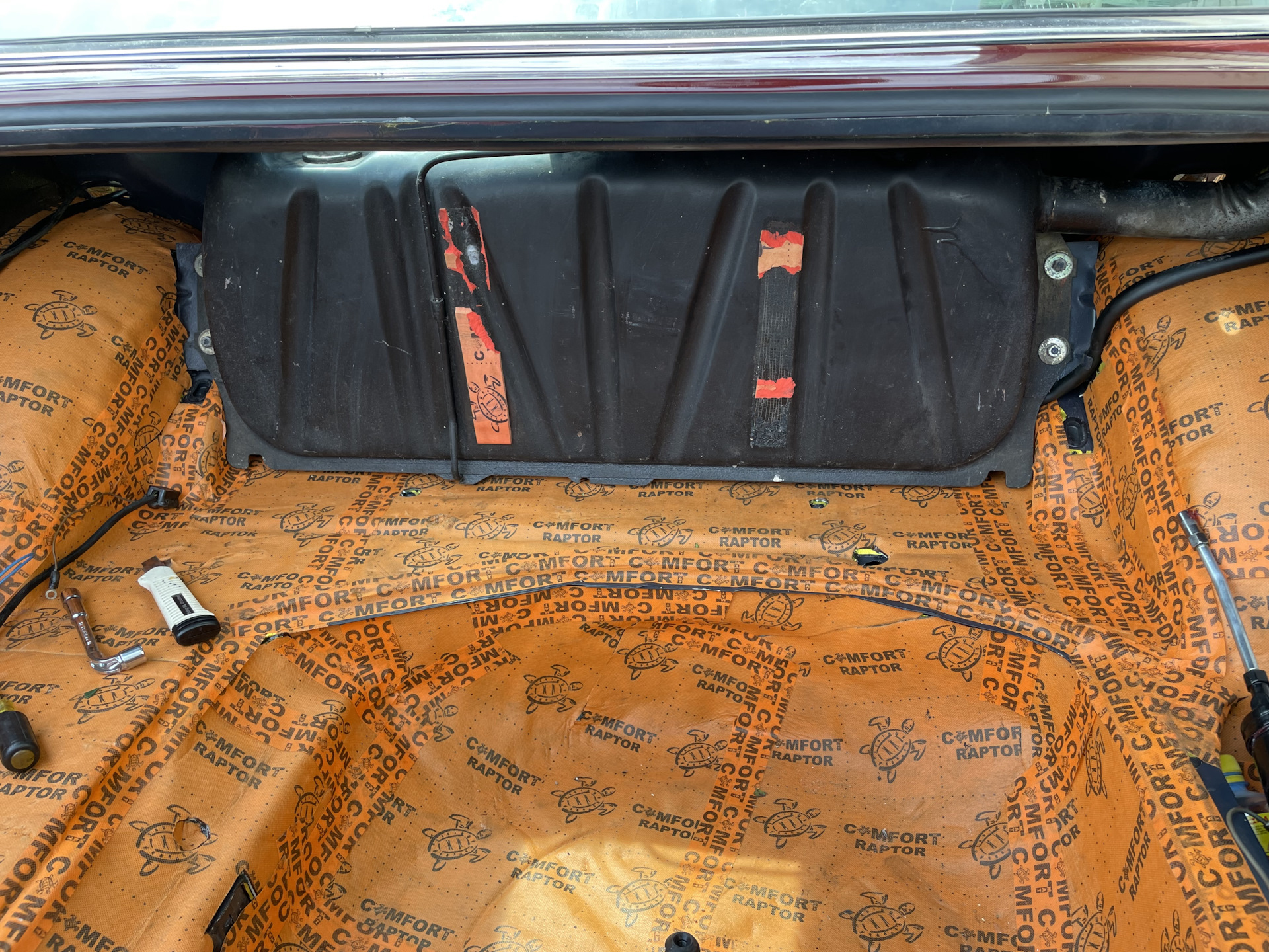 Расшумливаю нишу запасного колеса, что бы выиграть немного места по высоте!