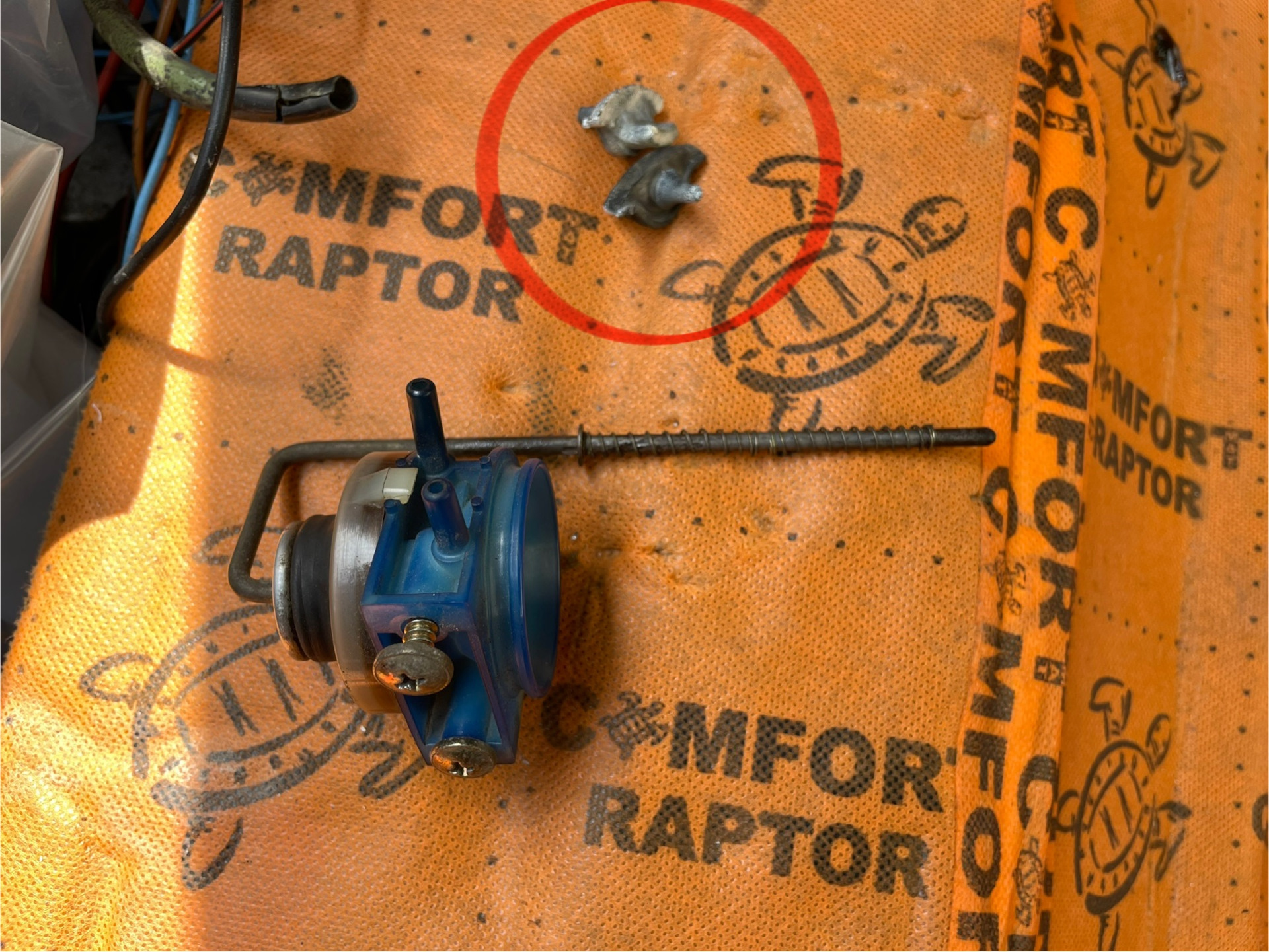 Далее нахожу запорный механизм лючка. Вместе с ним лежали старые демпферы крышки. По состоянию три раза себя похвалил, что нашёл по сути новые 👍🏻
