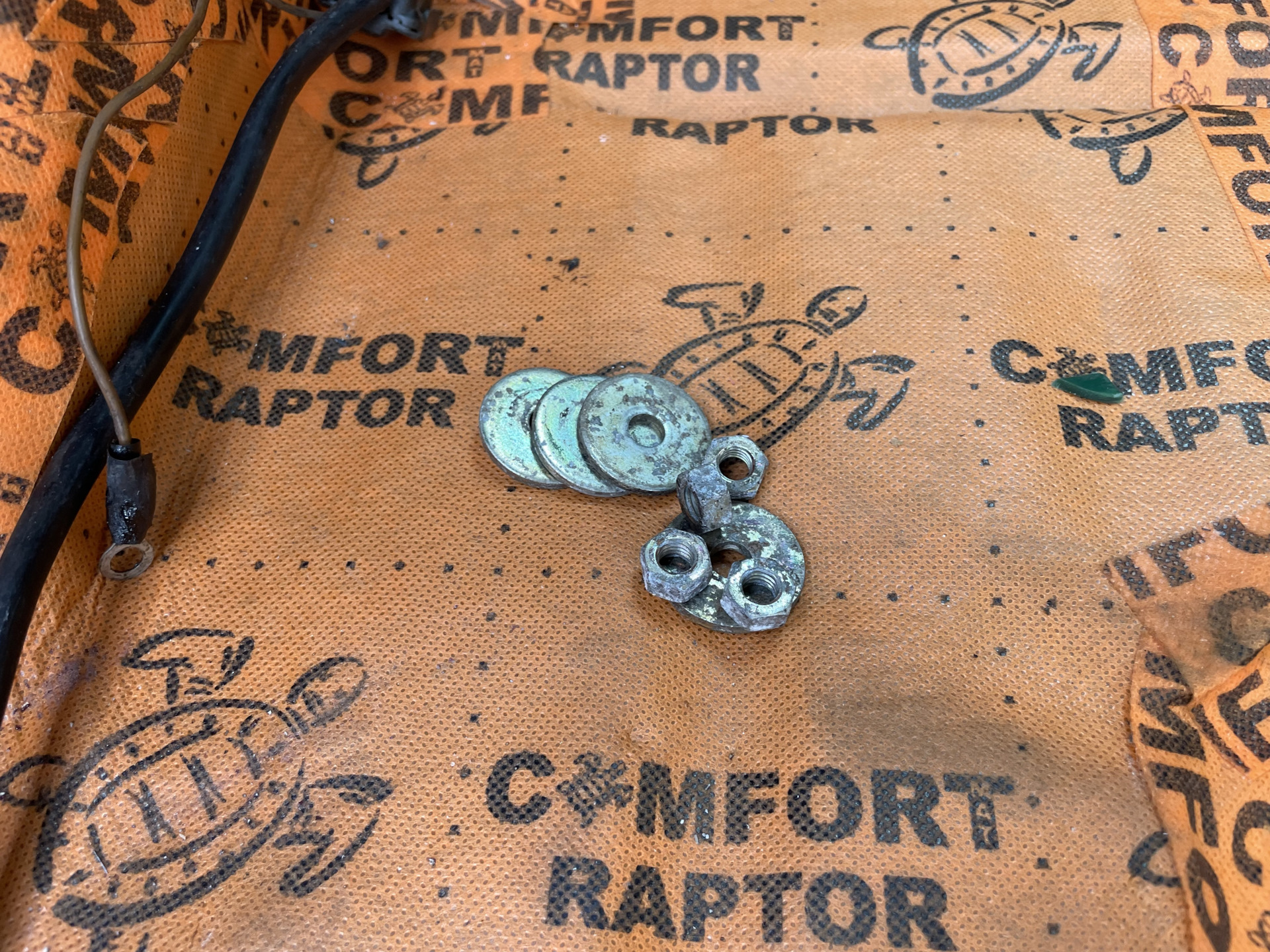 Гайки и шайбы для установки, там же по соседству ещё была и трубка дренажа лючка бензобака.