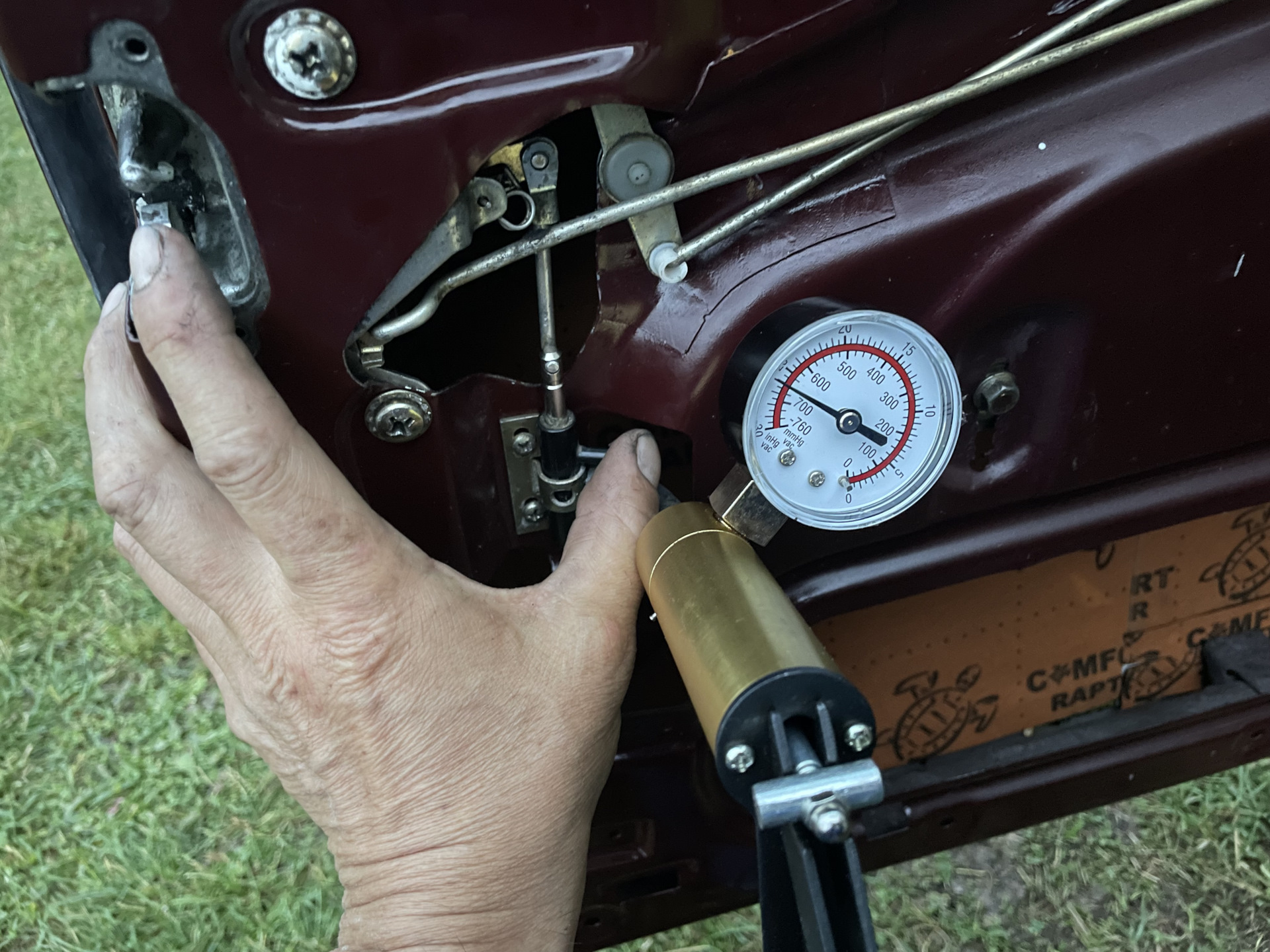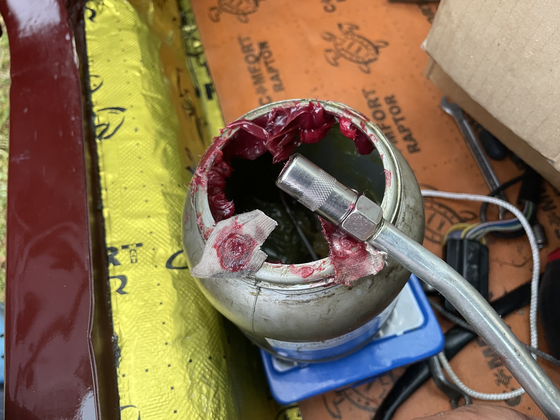 Если кто не в курсе — да на петлях наших дверей стоят пресс маслёнки. Обслуживать их надо используя рычажно-плунжерный шприц. Если не получается нагнести внутрь смазку, то рекомендую взять тряпочку и давить через неё. Она собой тупо немного уплотнит