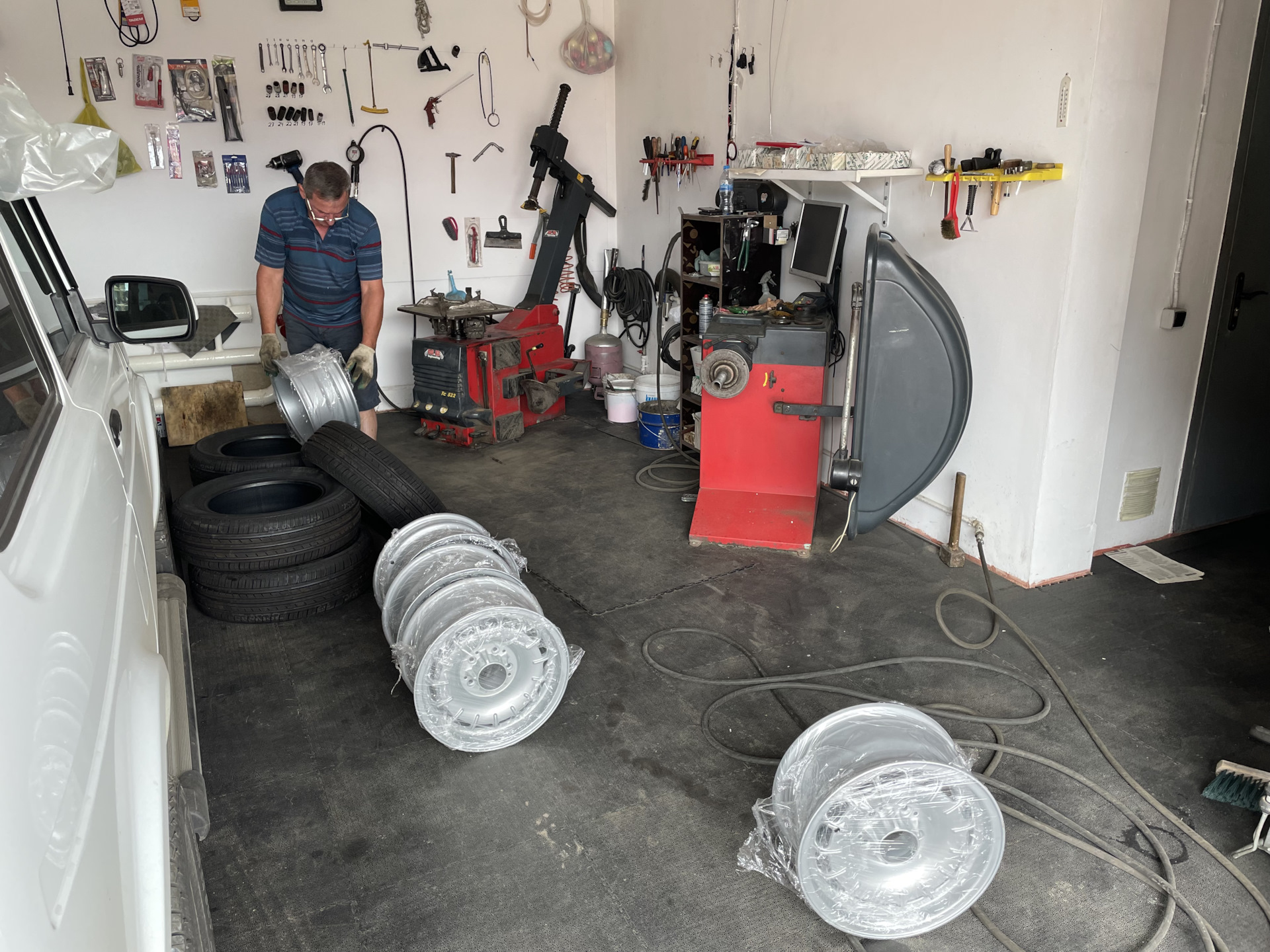 Тем временем Георгий, что бы посмотреть на мою машину, сам на Газели привёз собранные колёса