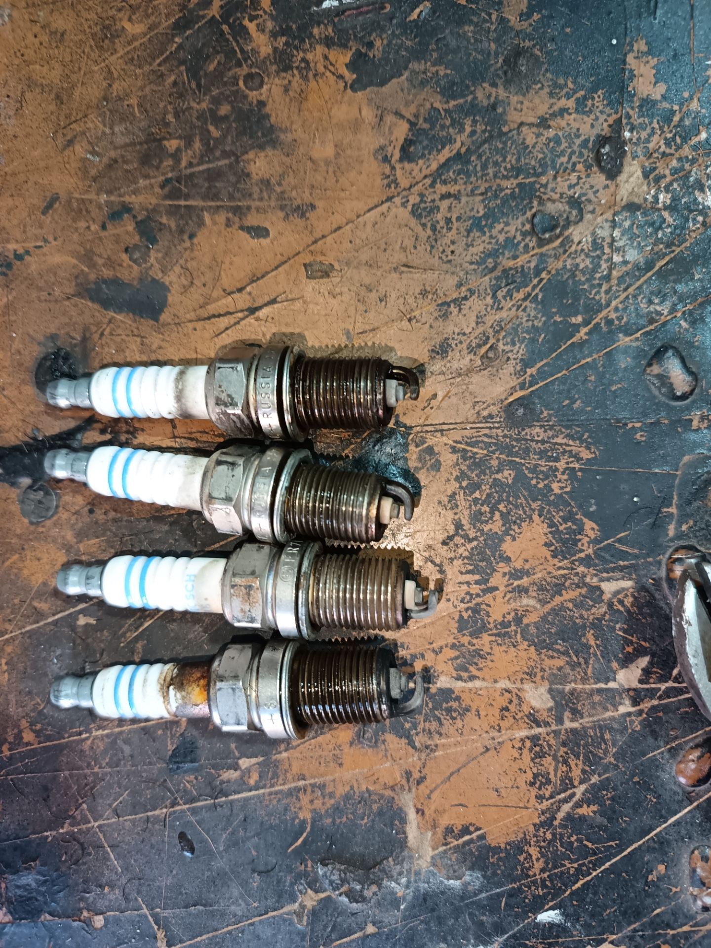 Да и у тебя судя по свечам либо колпачки маслосъёмные сдохли либо напрявляйки раздолбило. Резьба вся в масле. Это не есть хорошо. Вот он расход.