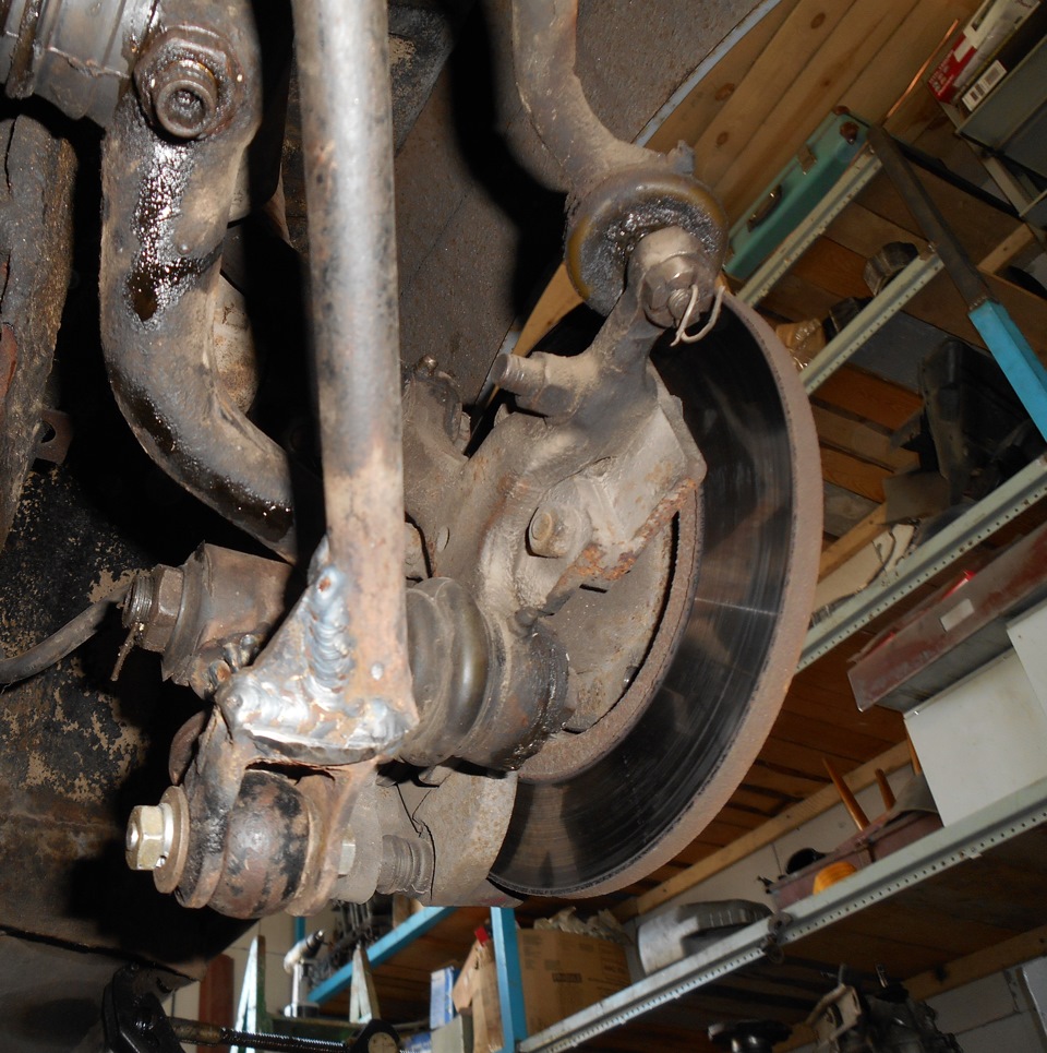 также я отрезал стандартное ухо стабилизатора и приварил к нему П-образный кронштейн от МТ, для крепежа стойки, усилив этот кронштейн дополнительной косынкой — теперь не оторвет!