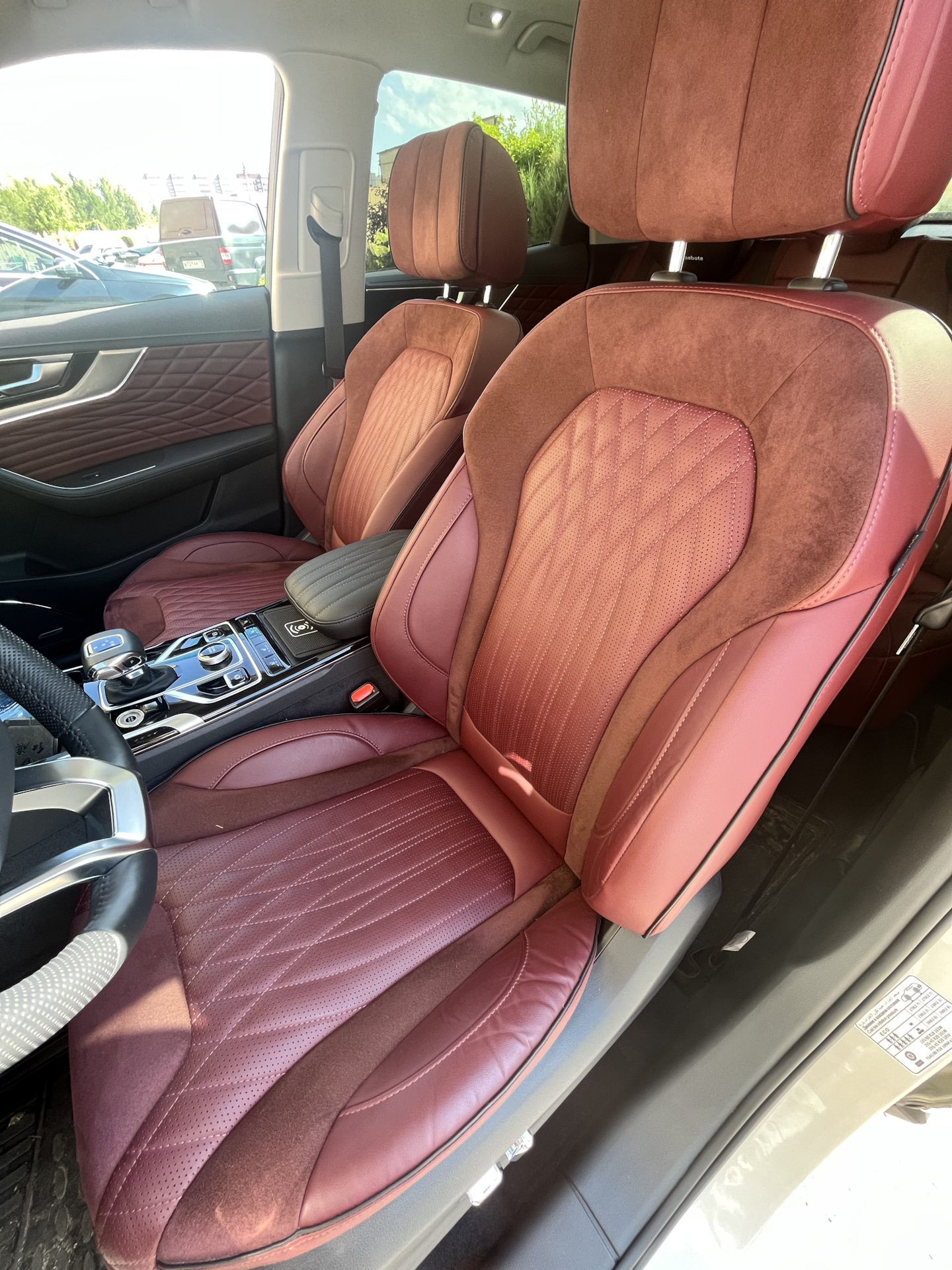 6. Материалы в салоне: выбрал вариант в бордовом цвете (на выбор в доресте есть бордовый, классический черный и синий с белым), да, смело, но мне нравится как выглядит. Салон комбинированный кожа + алькантара.