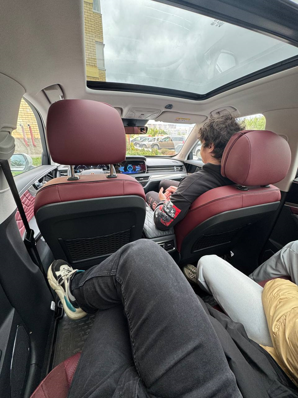 4. Аэродинамика кузова: на скорости машина ведет себя очень уверенно, на 180+ ее не сносит никуда от встречных фур и ветра. Шумов дополнительных на подобной скорости, конечно, добавляется, но все в меру. Но есть и просчеты : первый это забрызгивание правого зеркала на скорости зимой, второй это потоки воды, которые бегут по боковым зеркалам, ну и третий это завывание воздуха со стороны водительской двери в сильный ветер или на скорости 120+. На самом деле эти 3 нюанса не особо ухудшают восприятие от машины, но иногда, в солнечную сухую погоду к ним добавляется четвертый нюанс, самый бесящий — это дребезжание водительского стекла + всей обшивки двери. Интересно то, что иногда все идеально, а иногда стекло дребезжит, а дверь на кочках издает странные сверчки. В моменте бесит. ОД достаточно безинициативно относится к подобным заявлениям по гарантии, поэтому собираюсь исправить данную проблему самостоятельно, из чата в тг узнал, что походу китайцы пожалели уплотнителей на стекло и дверь, поэтому буду искать грамотных мастеров, кто смог бы все разобрать, проклеить, добавить уплотнителей и заодно зашумить двери.